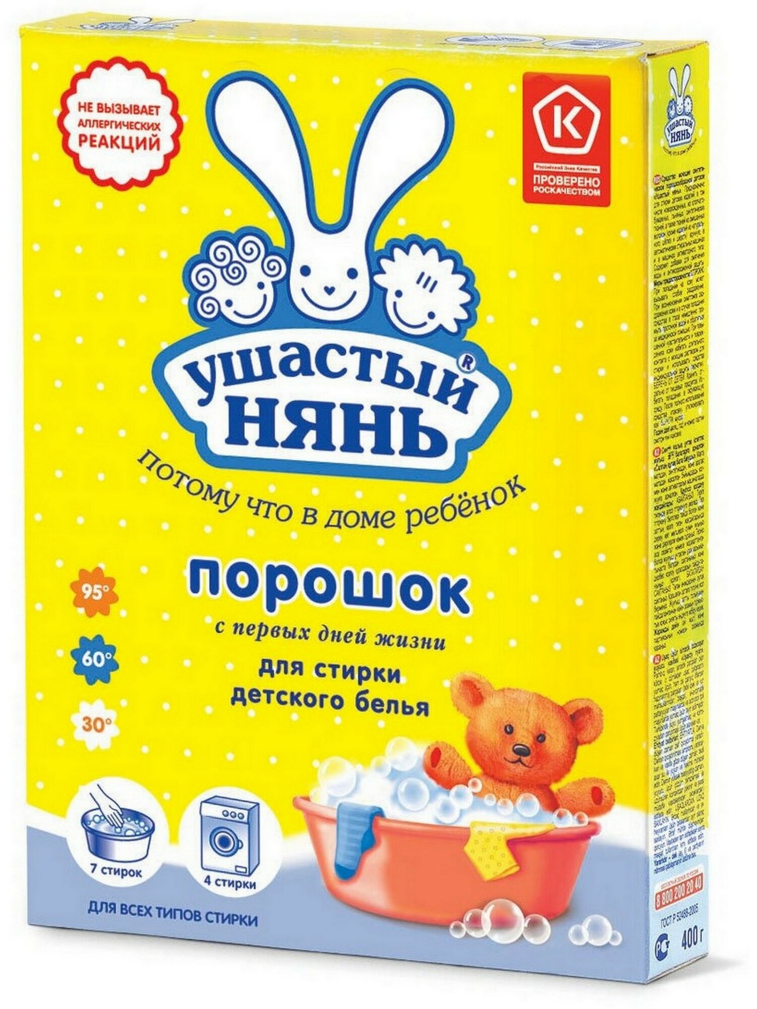 | Отзыв: | Так как я аллергик, пользуюсь только детским порошком, ушастик отлично подходит, не вызывает раздражений и зуда |