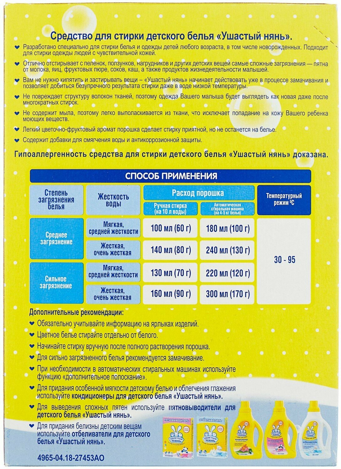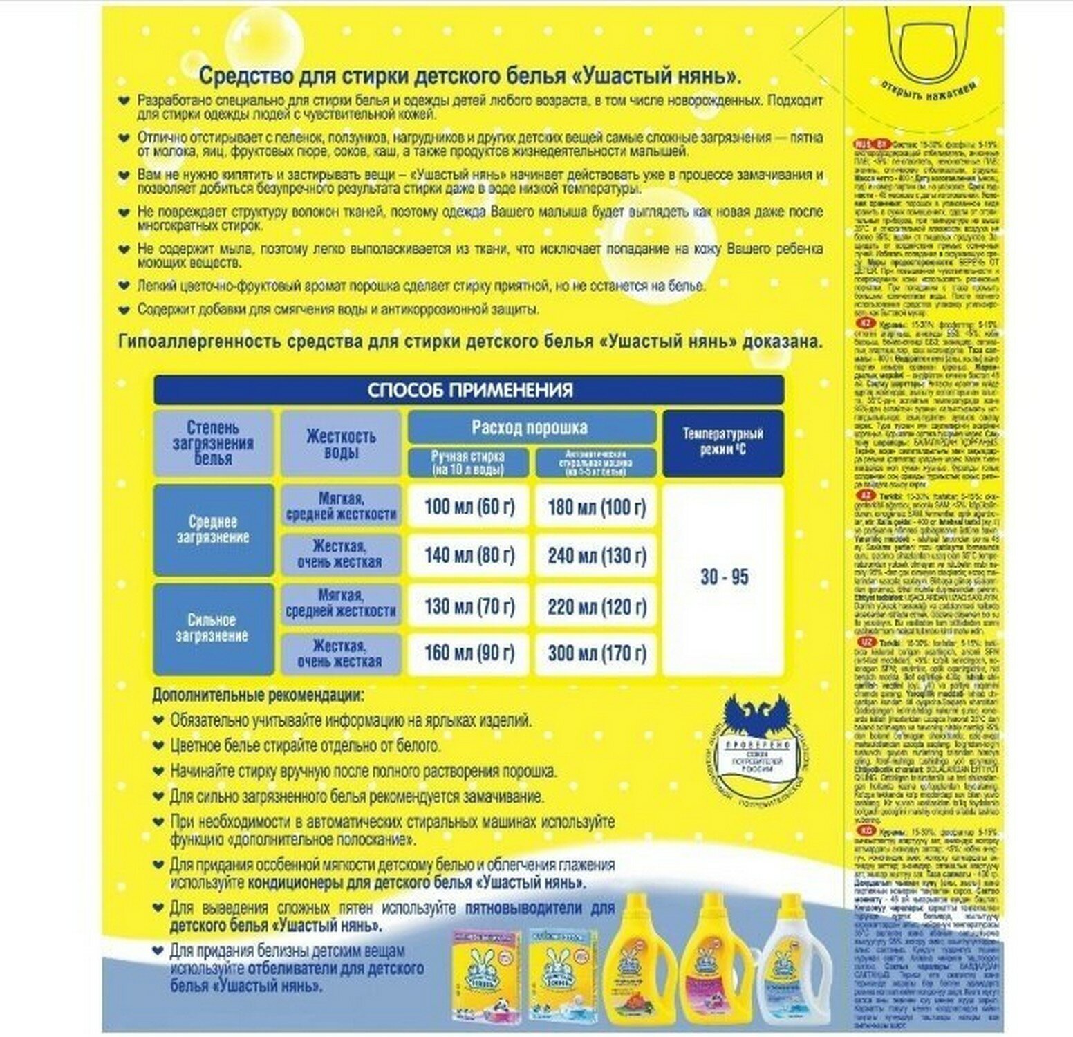 | Отзыв: | Так как я аллергик, пользуюсь только детским порошком, ушастик отлично подходит, не вызывает раздражений и зуда |