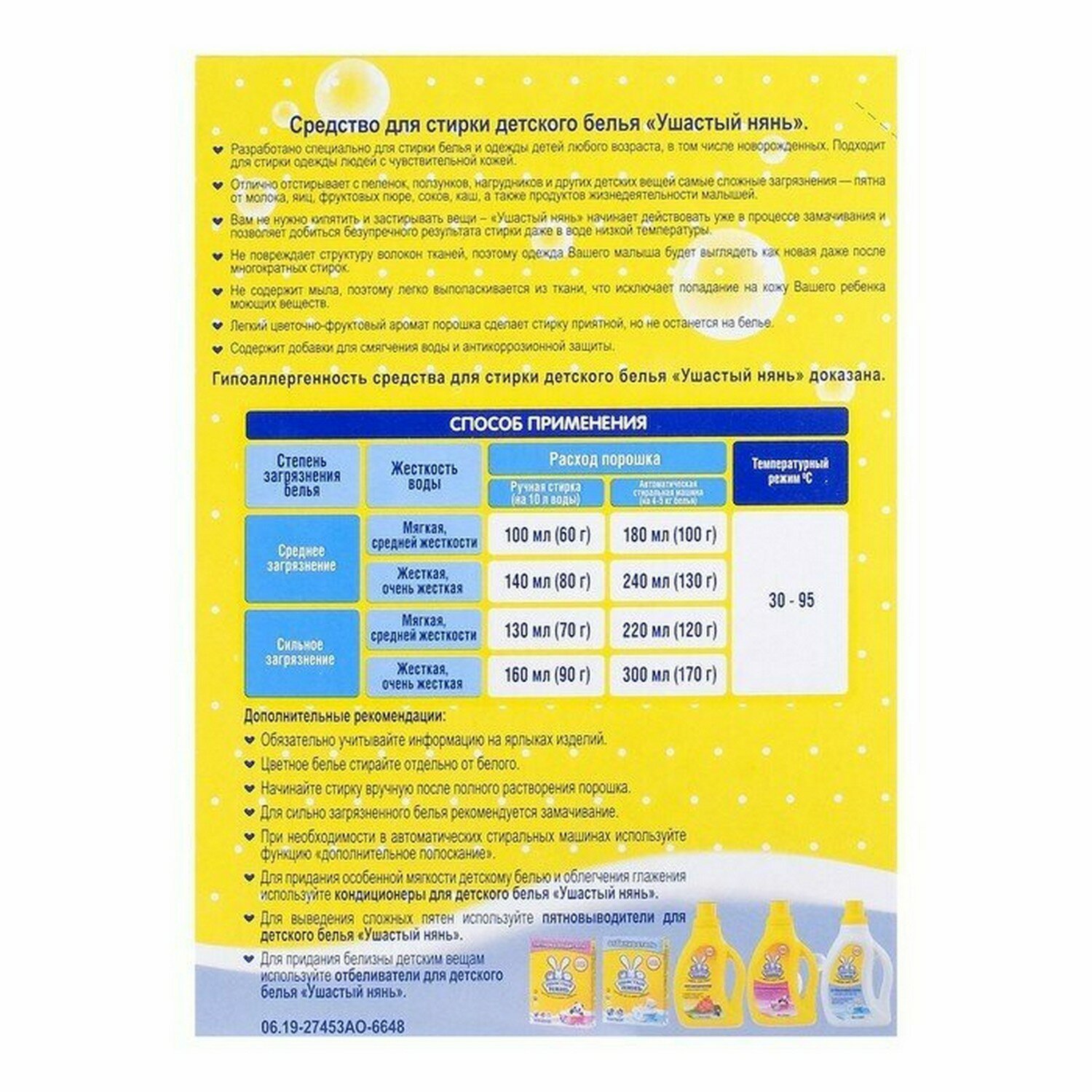 Купить Ушастый Нянь Стиральный порошок для стирки детского белья, 0.4 кг - 6 шт