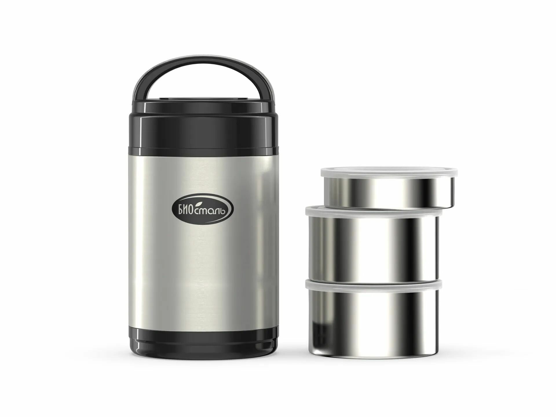 Термос BIOSTAL 1800-NR черный с 3-мя металлическими контейнерами, объем 1,8л