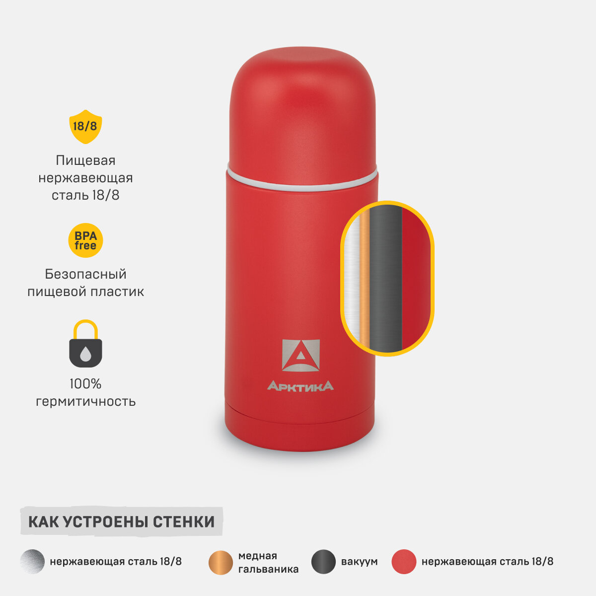 105-500 Красный Термос бытовой, вакуумный, питьевой 105-500 Красный Арктика, 500 мл,