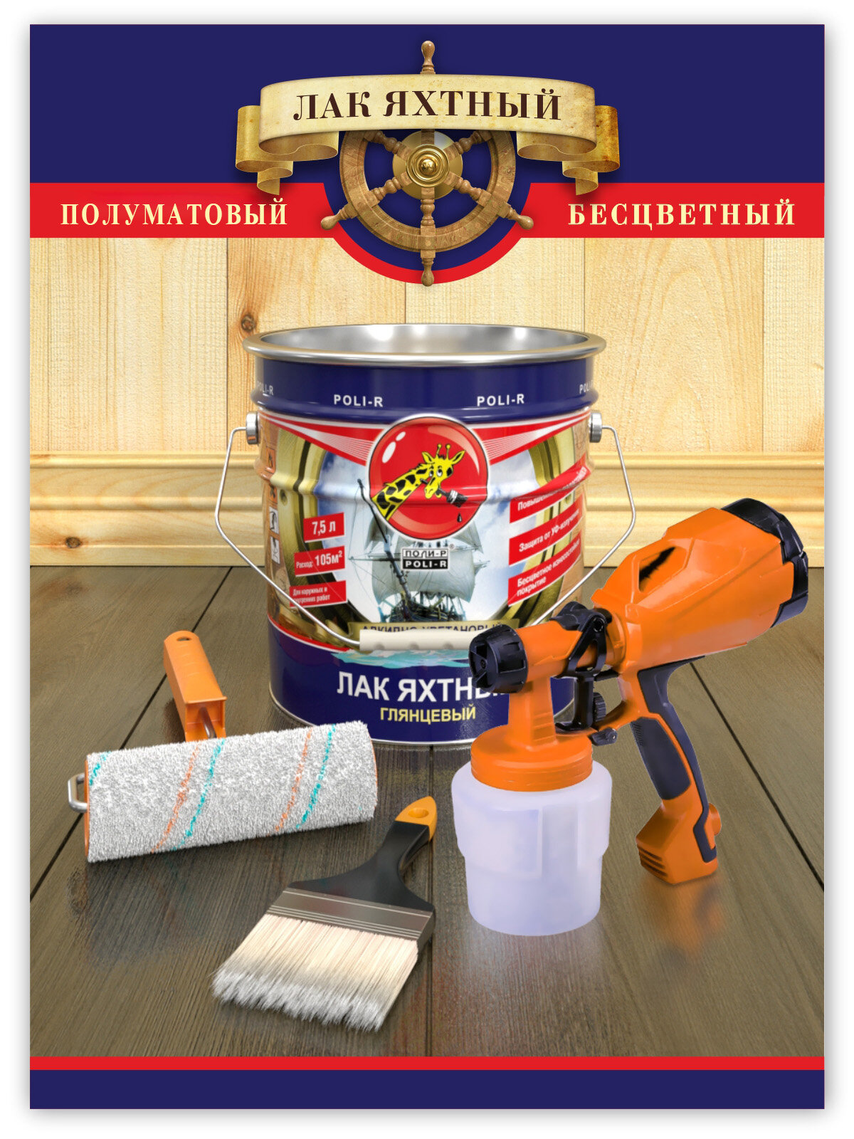 Купить Лак Яхтный Poli-R 2.5л Глянцевый для Внутренних и Наружных Работ / Поли-Р.