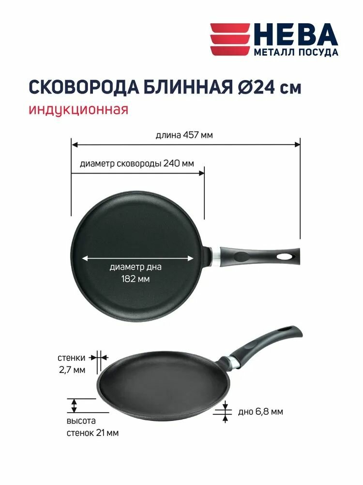 Сковорода блинная нева металл посуда 59224 Ферра индукция, 24 см.