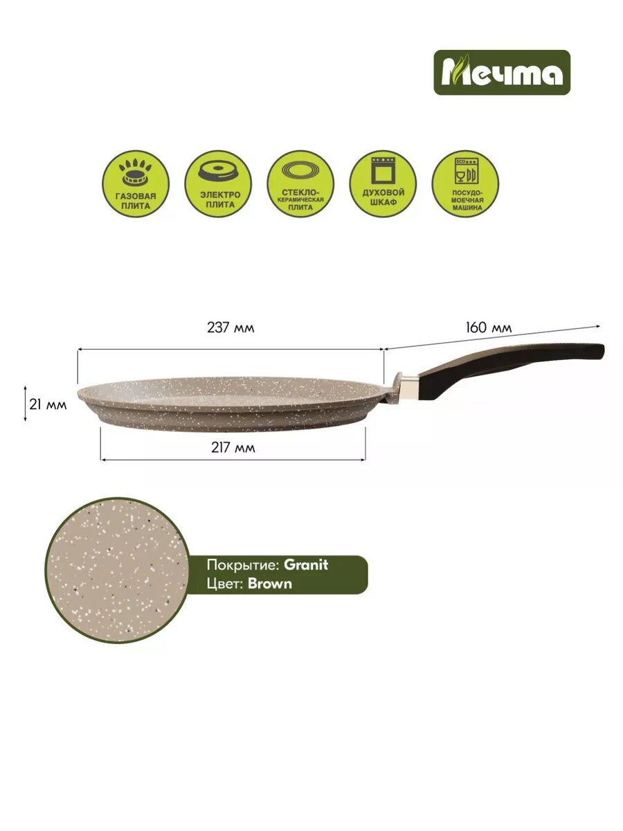 Сковорода для блинов Мечта Гранит Brown 14806 алюминий с гранитным антипригарным покрытием, диаметр 24см / блинница для газовых и электрических плит
