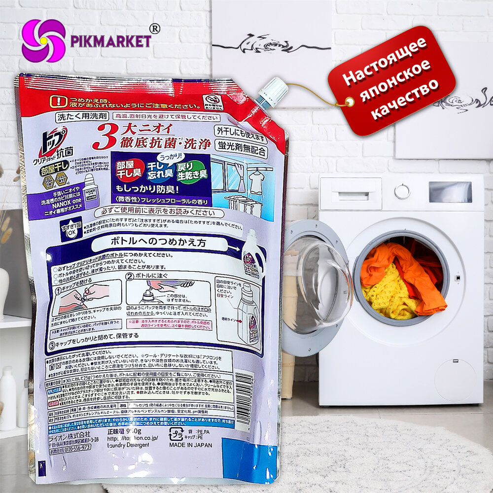 Lion Top Clear Liquid Жидкое средство для стирки белья с антибактериальным эффектом Топ-сухое бельё, 900 гр.