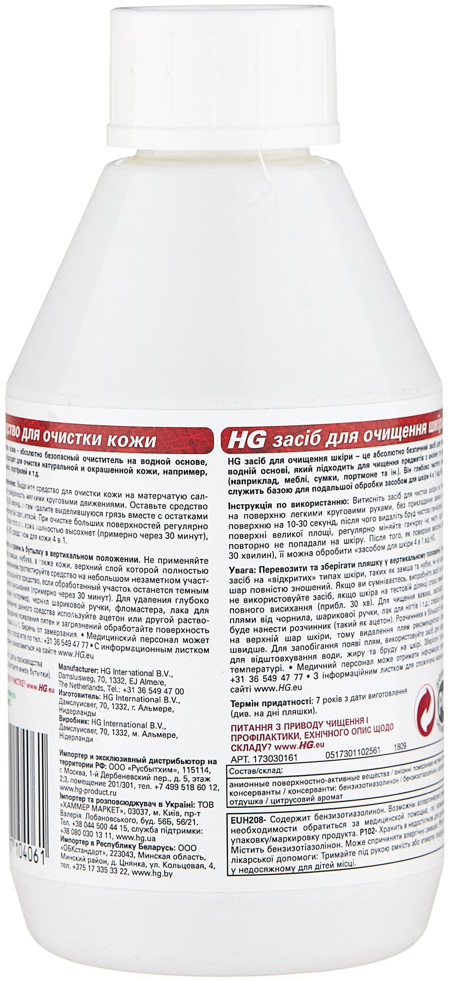 HG Средство для очистки кожи, 0.25 л