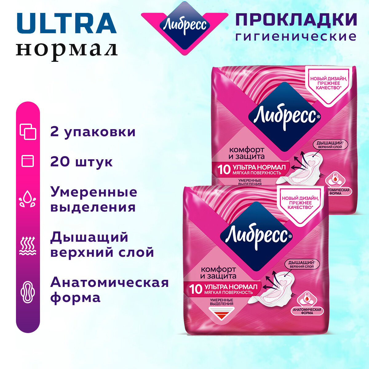 Libresse Прокладки гигиенические Ultra Normal, мягкая поверхность, 10 шт/уп, 2 уп