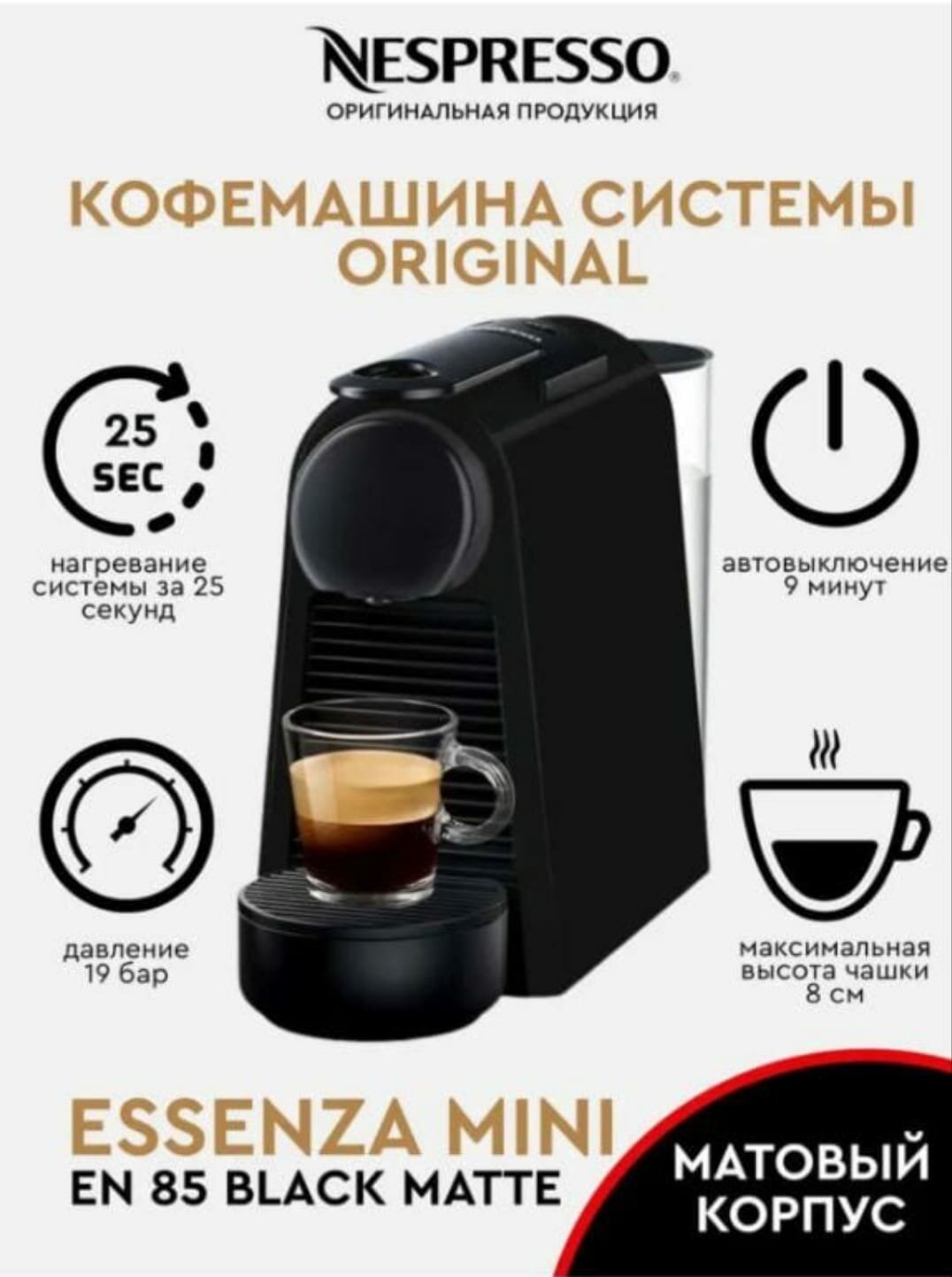 Кофемашина капсульная Nespresso Essenza Mini EN 85, черный матовый