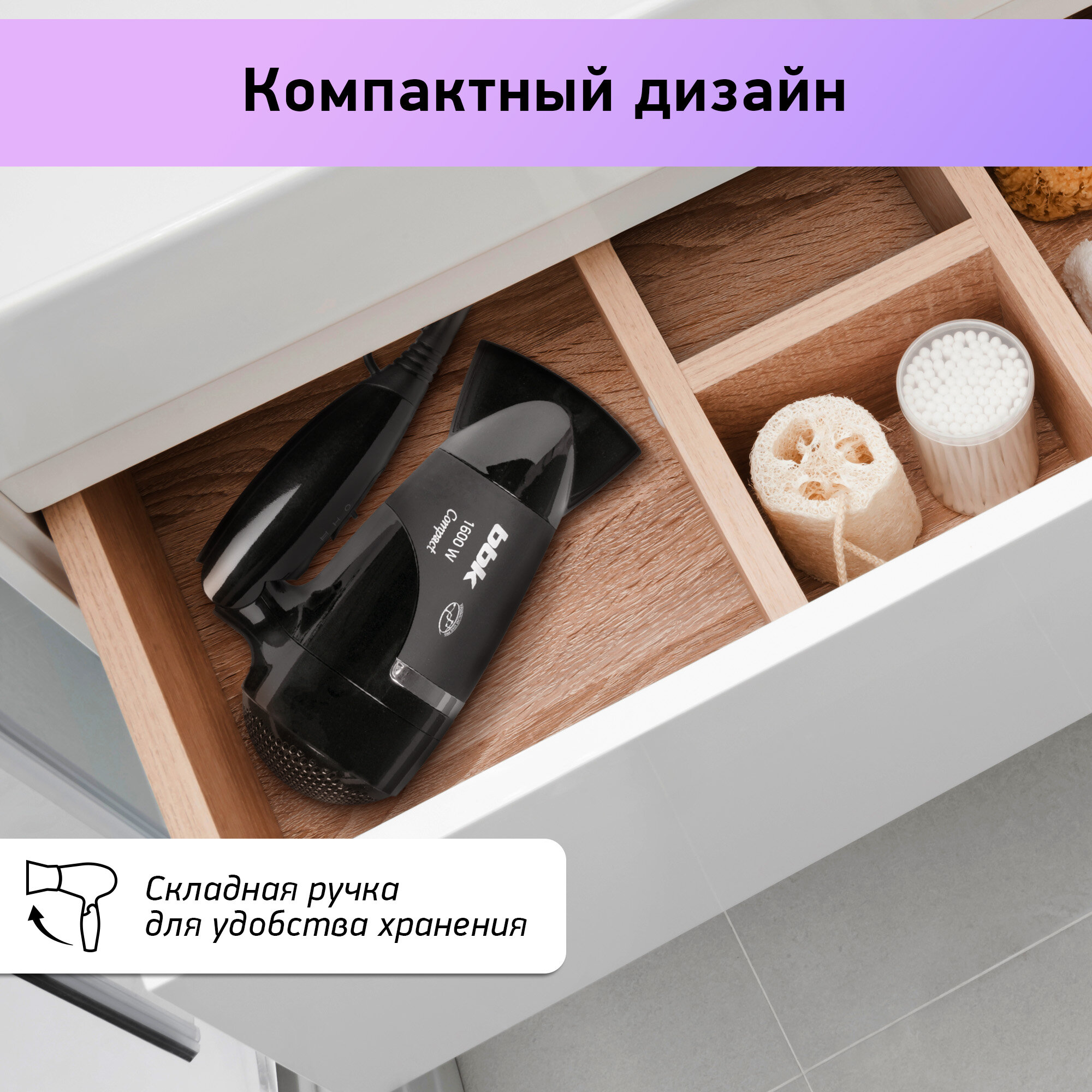 Купить Фен для волос BBK BHD1602i черный, мощность 1600 Вт, 2 температурных режима, 2 скорости, складная ручка, ионизация