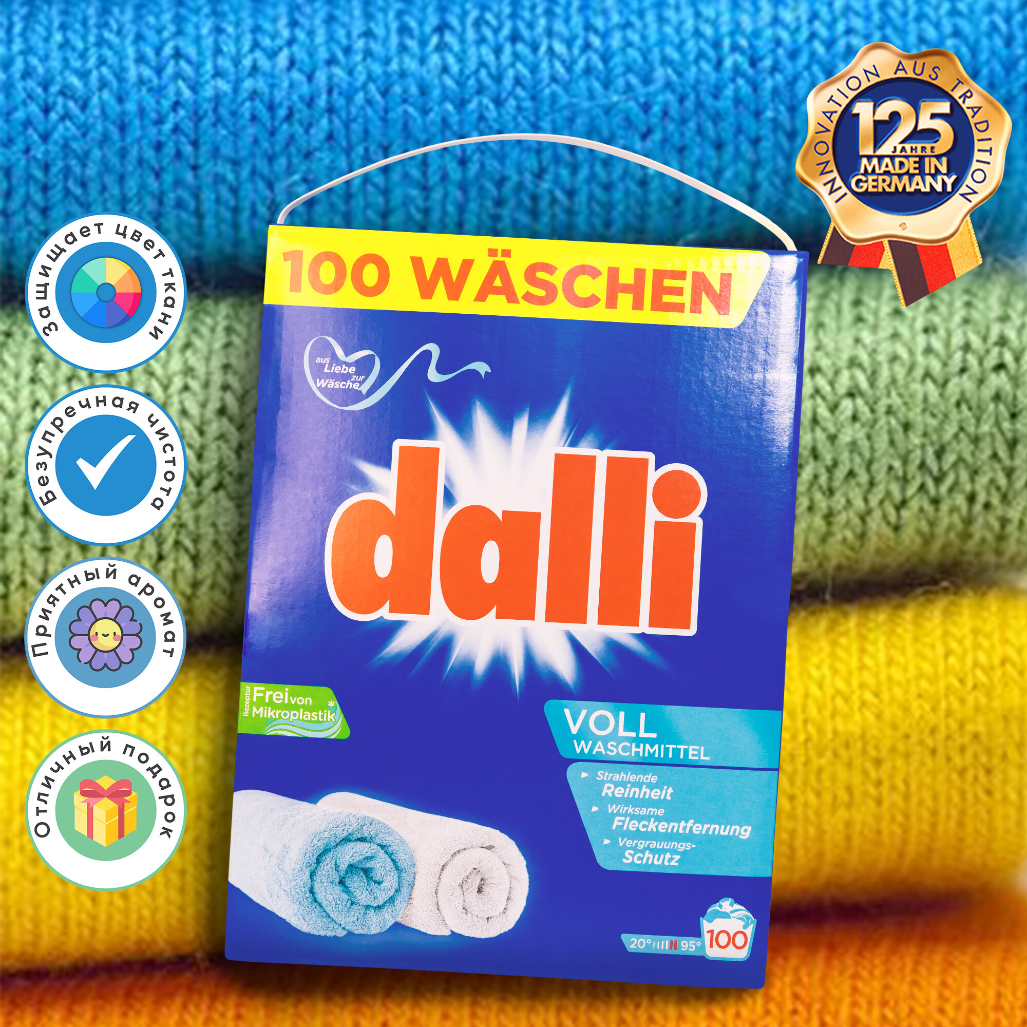 СохранитьСухой стиральный порошок Dalli Voll (Activ) 6кг, 100 стирок, Германия интересное: