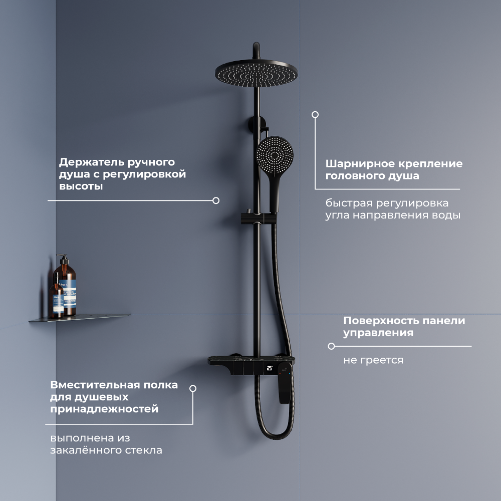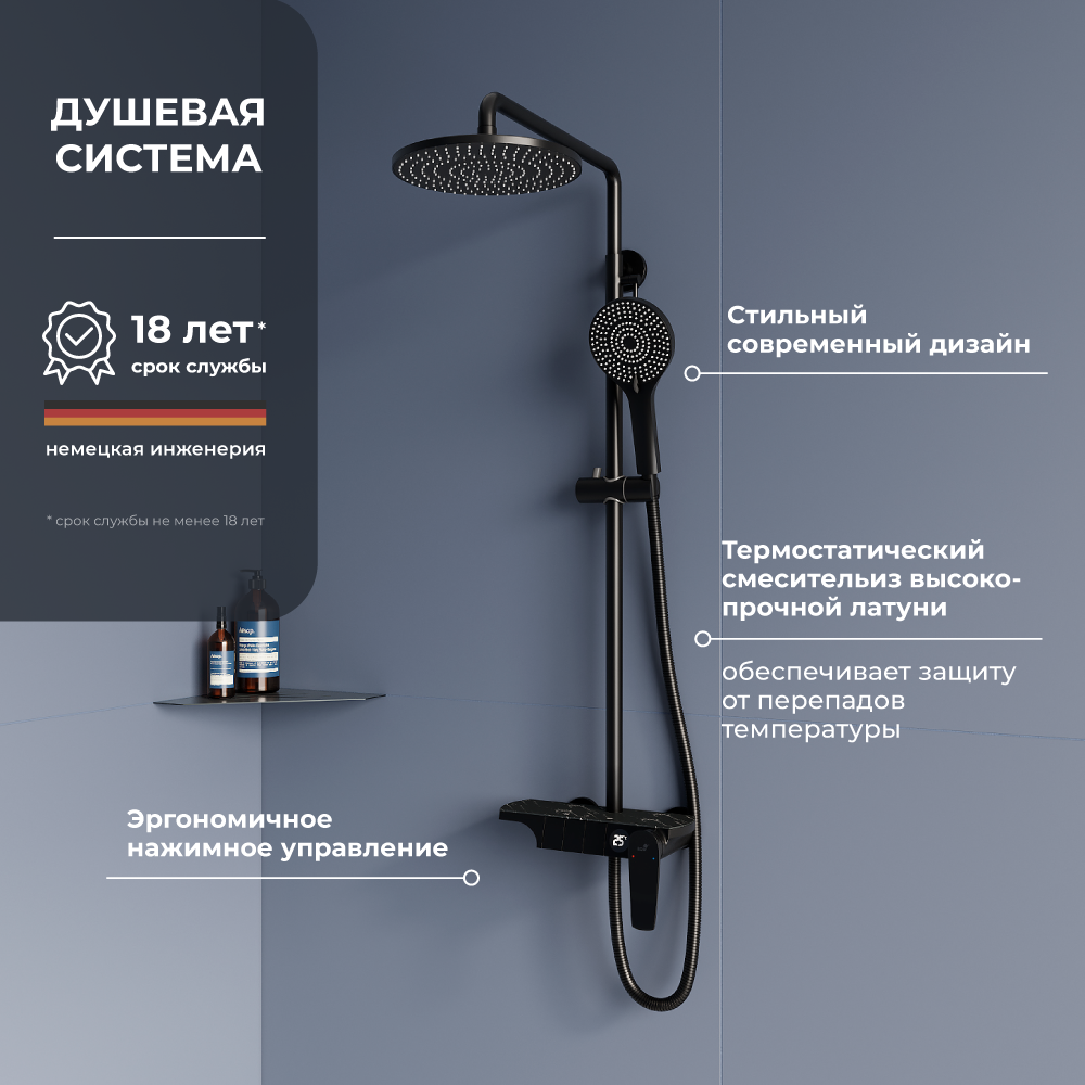 СохранитьДушевая система с тропическим душем RGW SP-33-B черный 51140133-04 интересное: