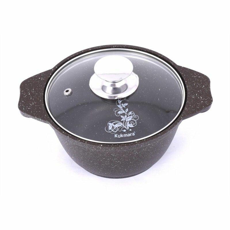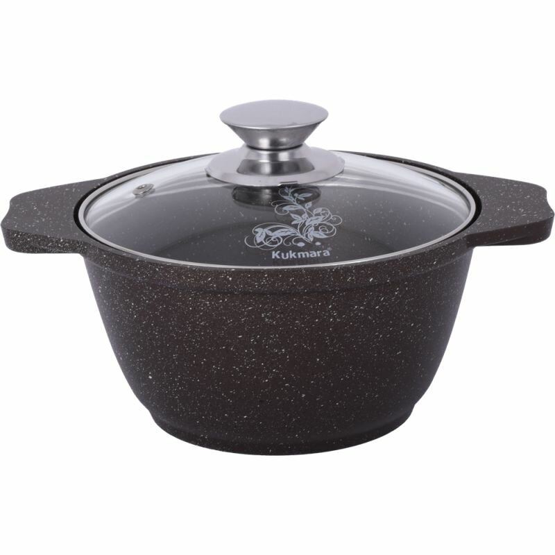 Кастрюля Kukmara 2 л, покрытие Мрамор кофейный, литой алюминий, со стеклянной крышкой 20см, кмк22а