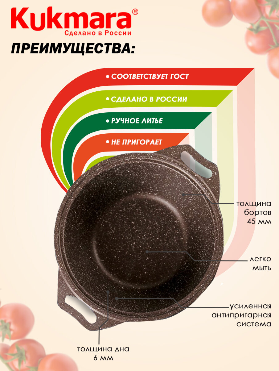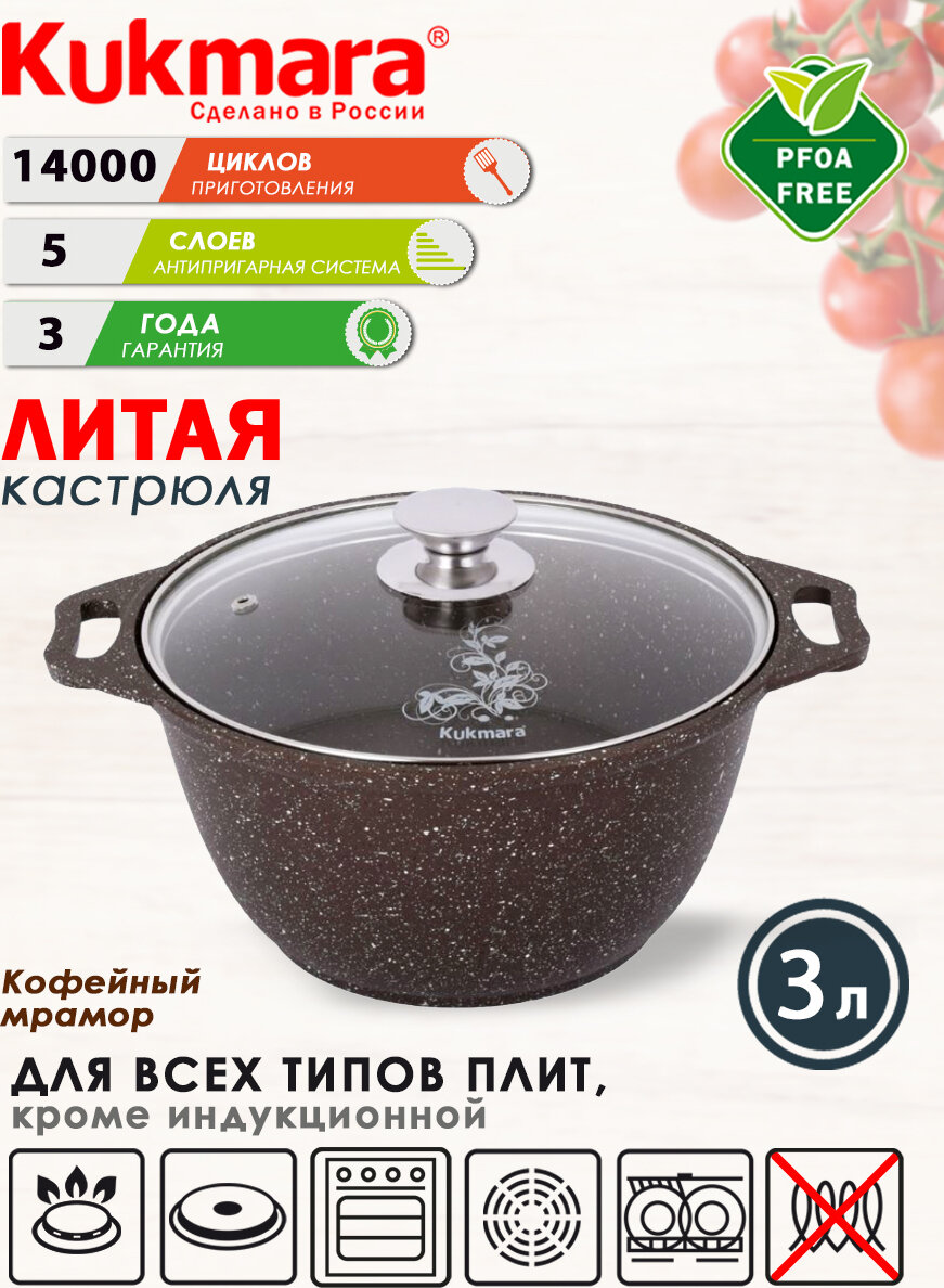 Кастрюля Kukmara кмк22а 2,0л кофейный мрамор