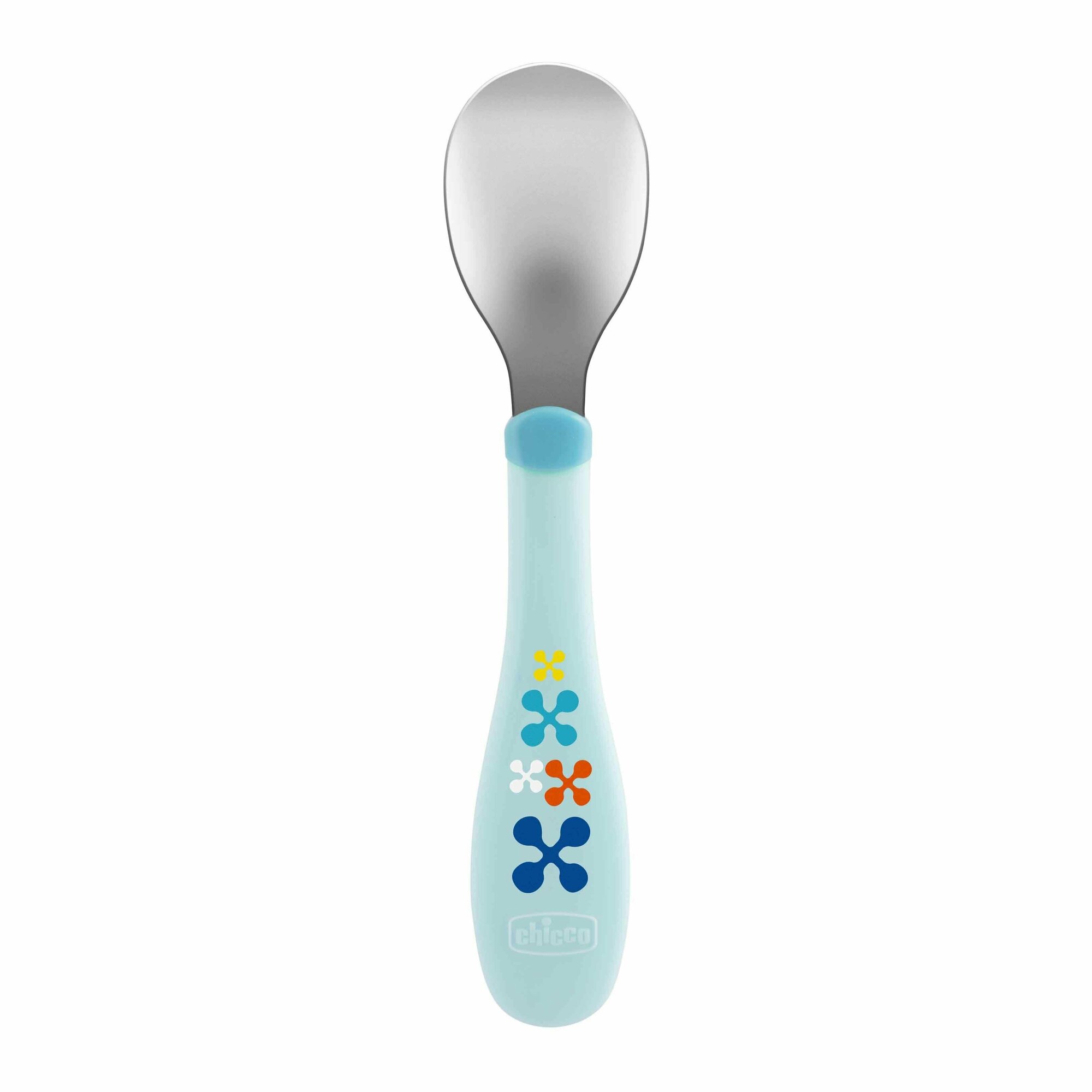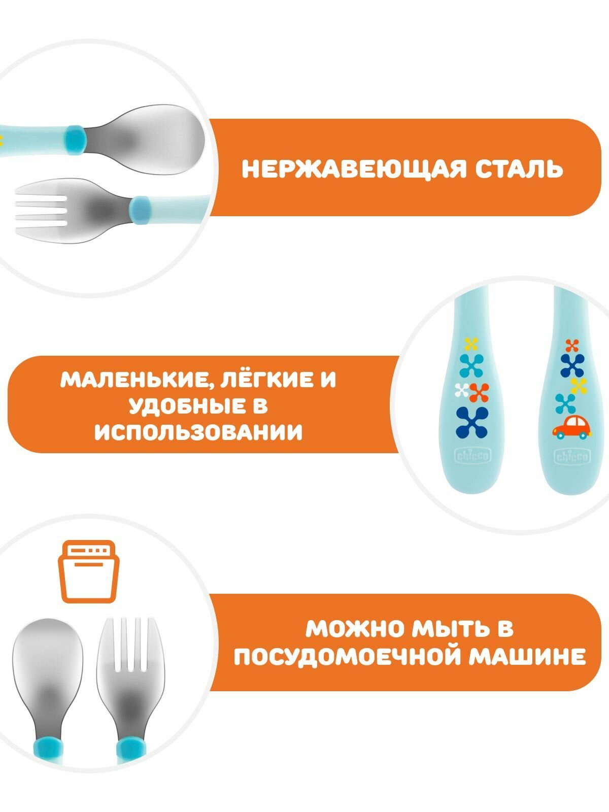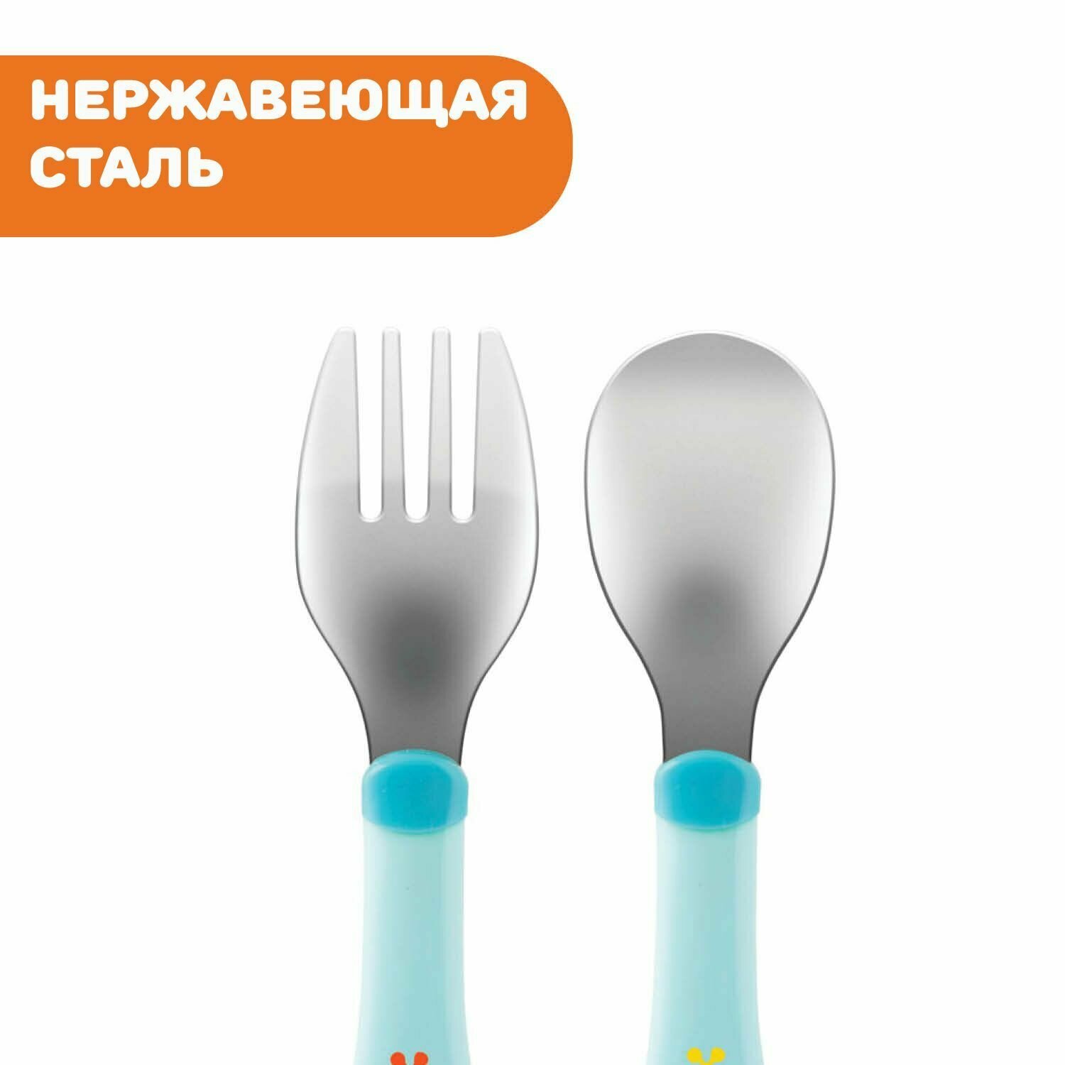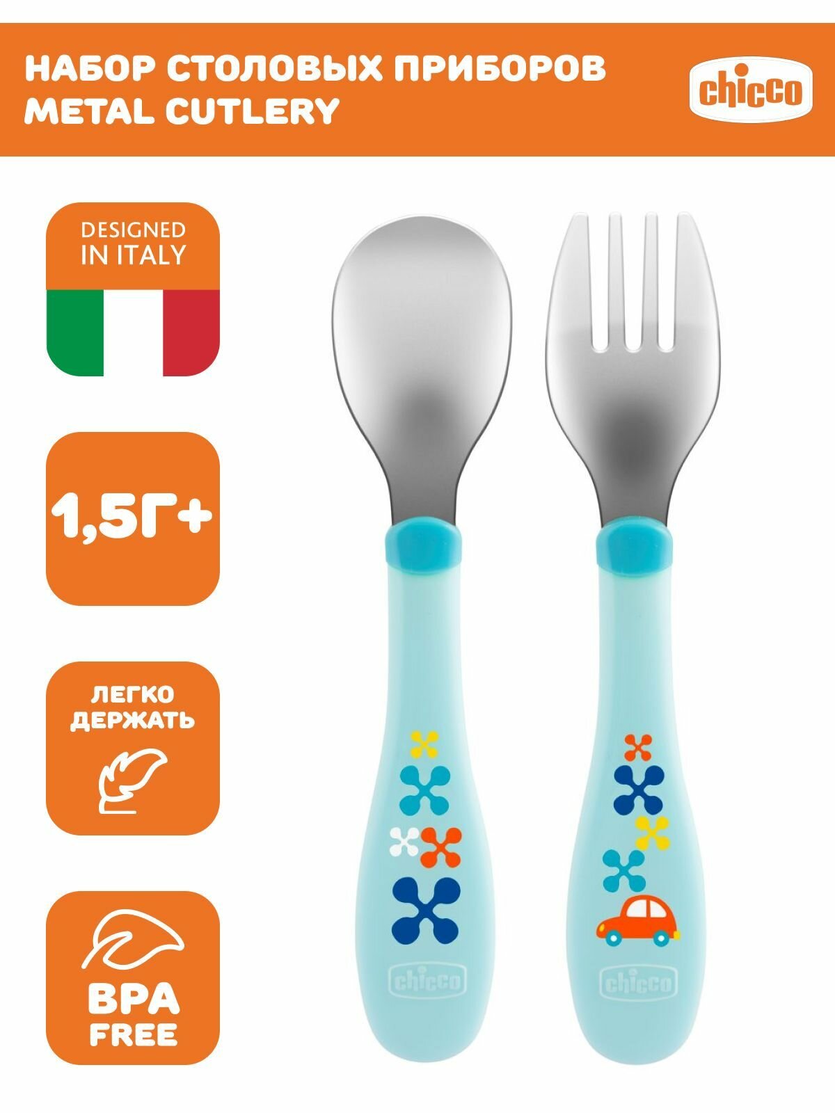 Купить Набор детских столовых металлических приборов Chicco Metal Cutlery ложка и вилка от 18 месяцев голубой