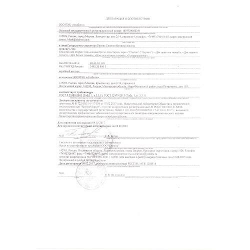 | Минусы: | Запах очень вонючий, едкий. Только для повседневной стирки средней загрязненности. Пятна и сильные загрязнения не отстирывает. |