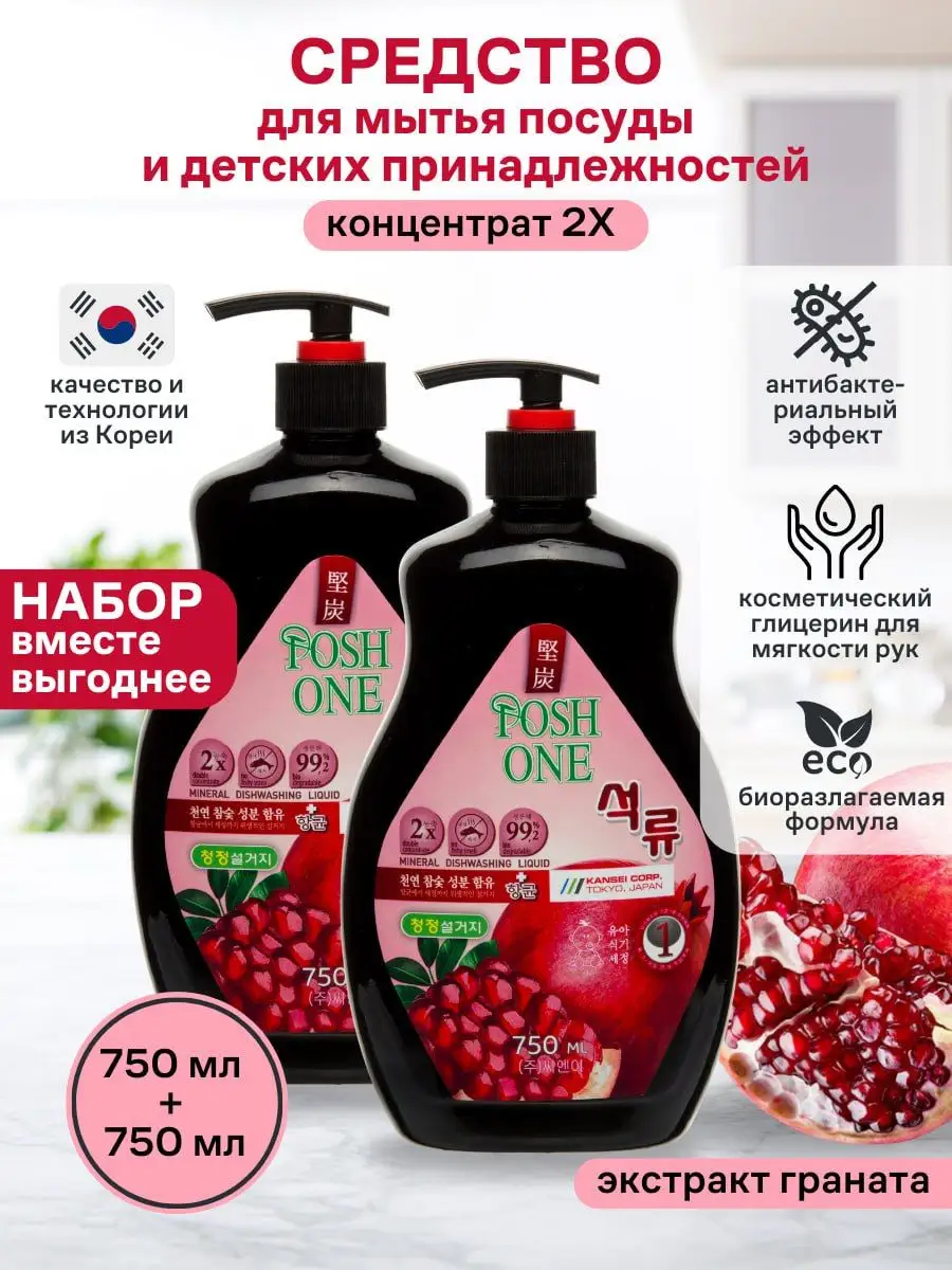 Средство для мытья посуды Posh One, гранат, 750 мл, 2 шт.