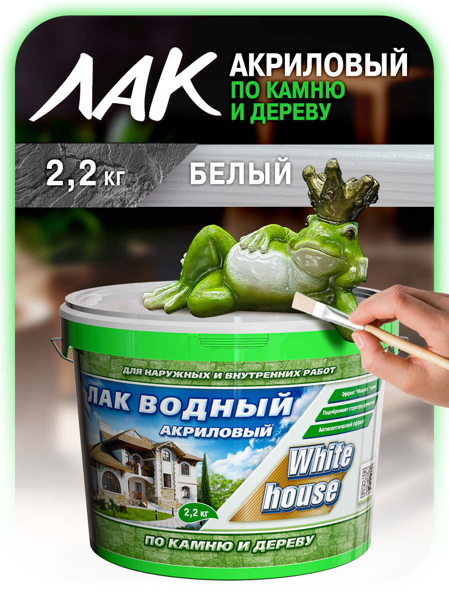 ЛАК водный ПО дереву И камню WHITE HOUSE белый 2,2 кг