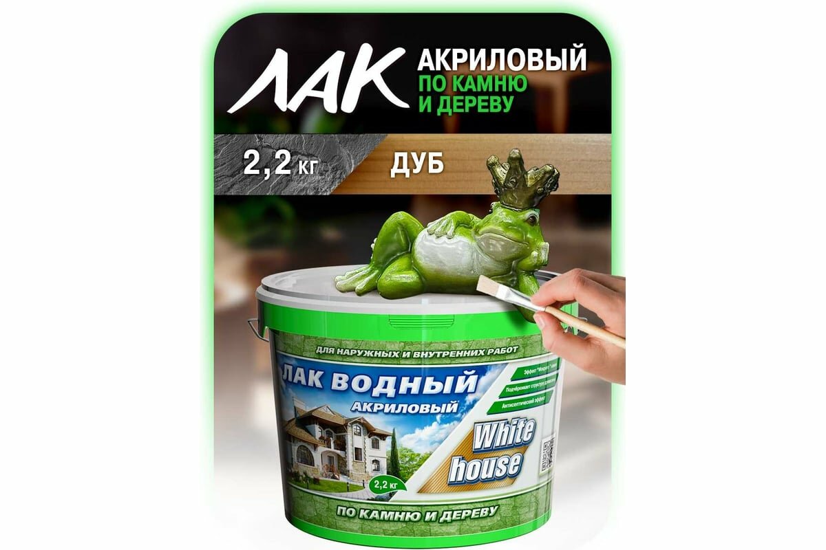 Купить Влагостойкий лак для стен, камню и дереву White House, акриловая быстросохнущая краска без запаха, Дуб 2,2 кг