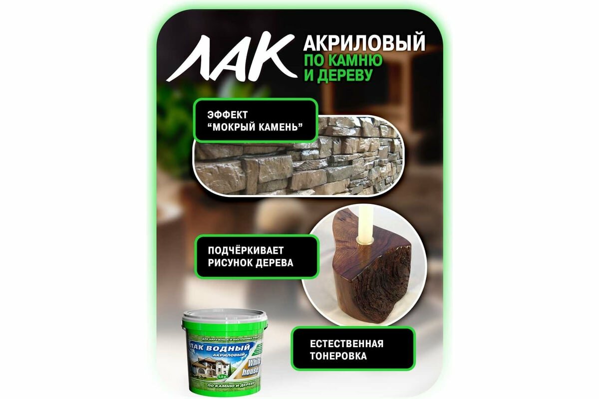 ЛАК водный ПО дереву И камню WHITE HOUSE акриловый Тик 0,9 кг