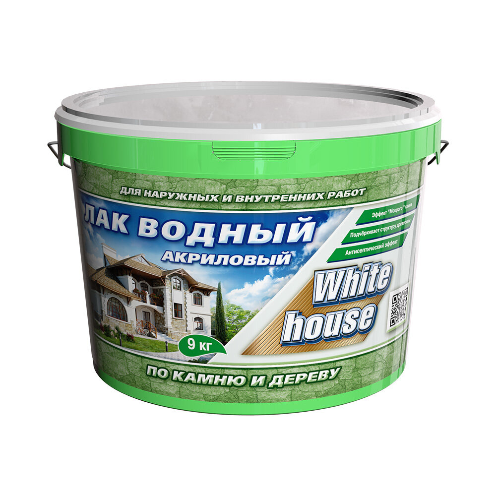 ЛАК водный ПО дереву И камню WHITE HOUSE белый 9 кг