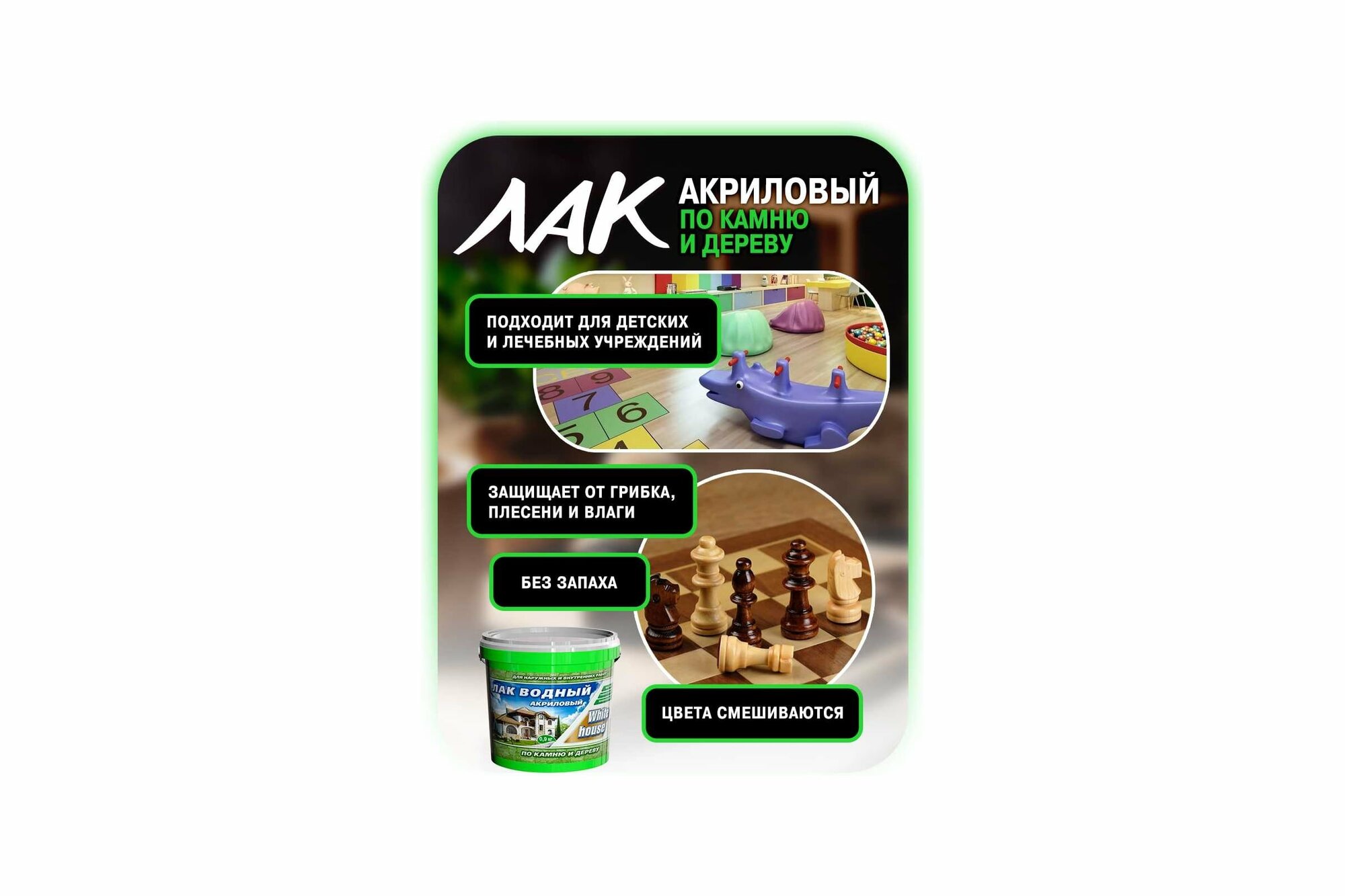 Влагостойкий лак для стен, камню и дереву White House, акриловая быстросохнущая краска без запаха, белый 2,2 кг