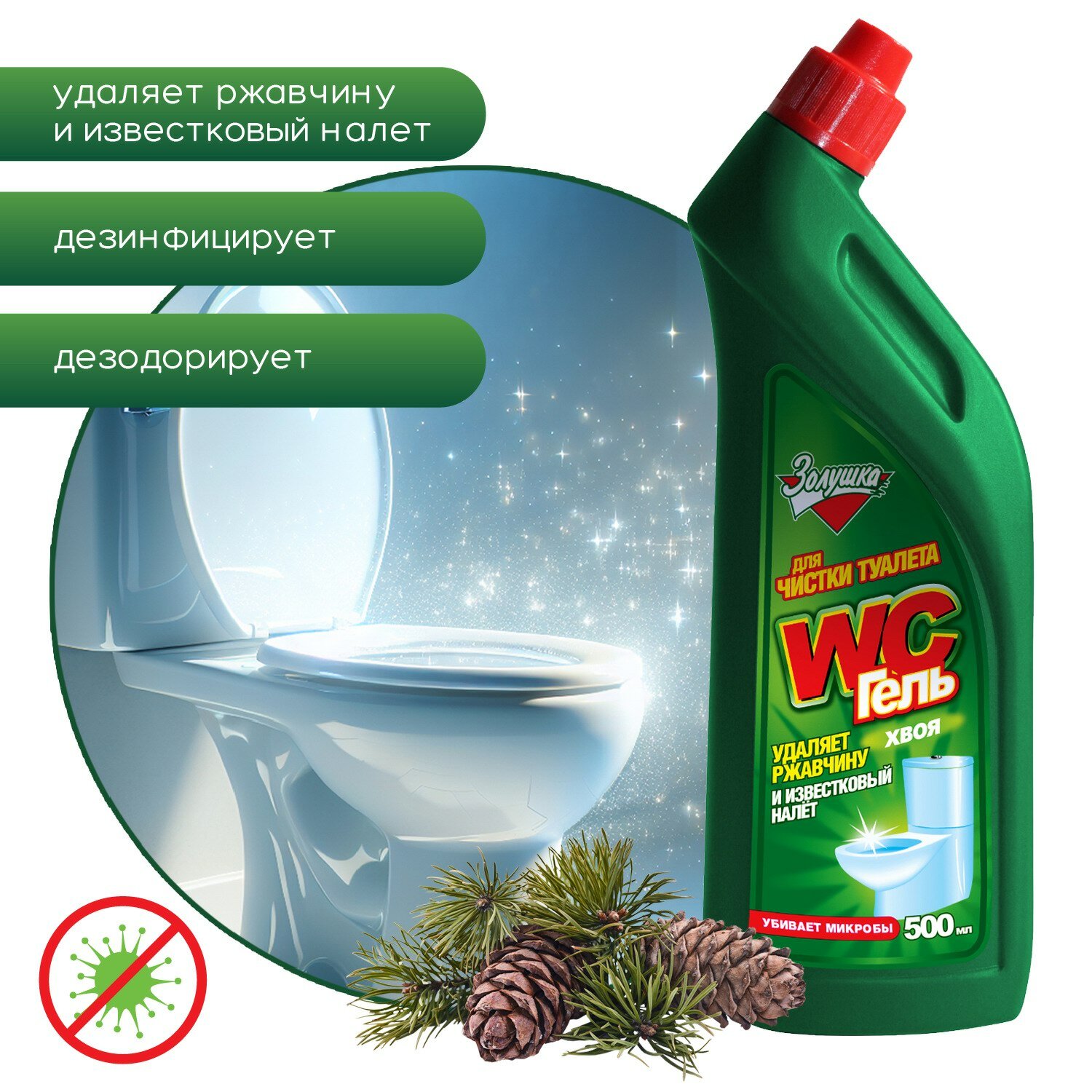 Золушка WC гель для унитаза Хвоя, 500 мл