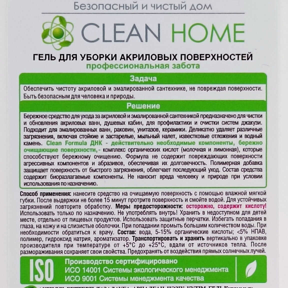 Гель для уборки акриловых поверхностей с бережным уходом Clean Home, 800 мл, 800 г