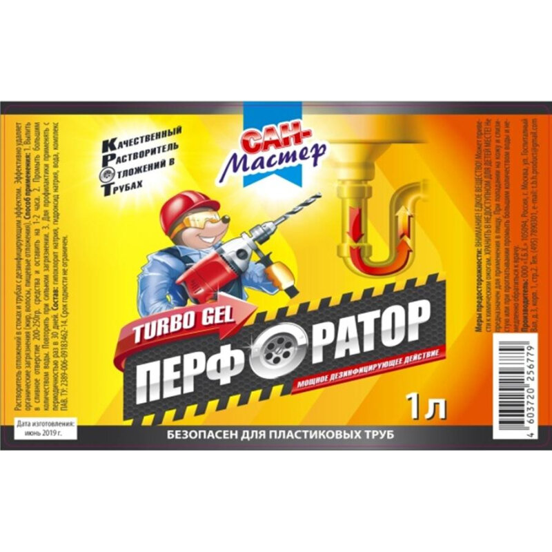 Ниже Вы можете прочитать отзывы на Сан Мастер Гель для прочистки и дезинфекции труб Перфоратор Турбо, 1 л, ознакомится с подробными характеристиками, посмотреть интересные обзоры и фотографии на Сан Мастер Гель для прочистки и дезинфекции труб Перфоратор Турбо, 1 л.