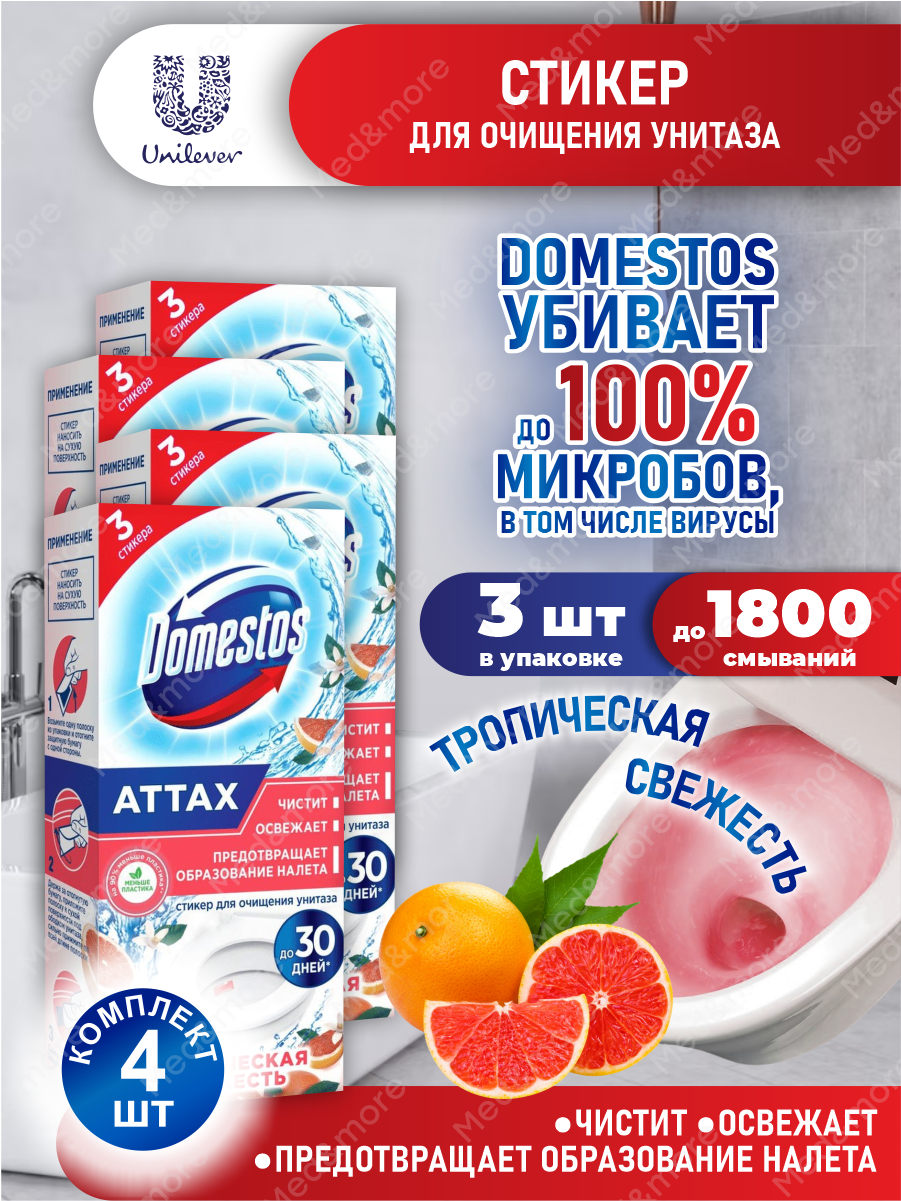 СохранитьDomestos Стикер для очищения унитаза Тропическая свежесть 30 гр. 3 шт./упак. х 4 упак. интересное: