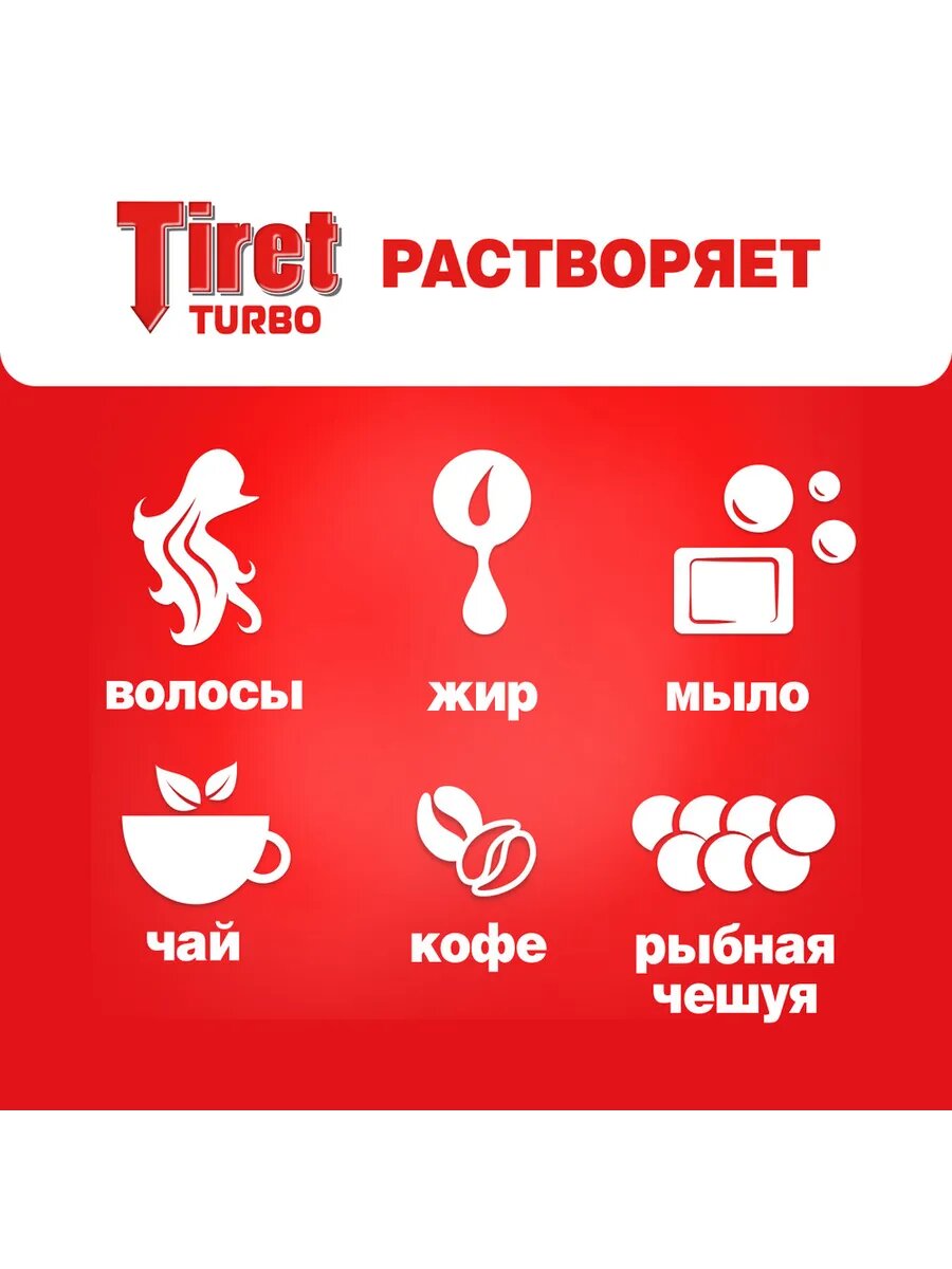Средство от засоров Tiret Turbo, для прочистки канализационных труб, антизасор,500мл