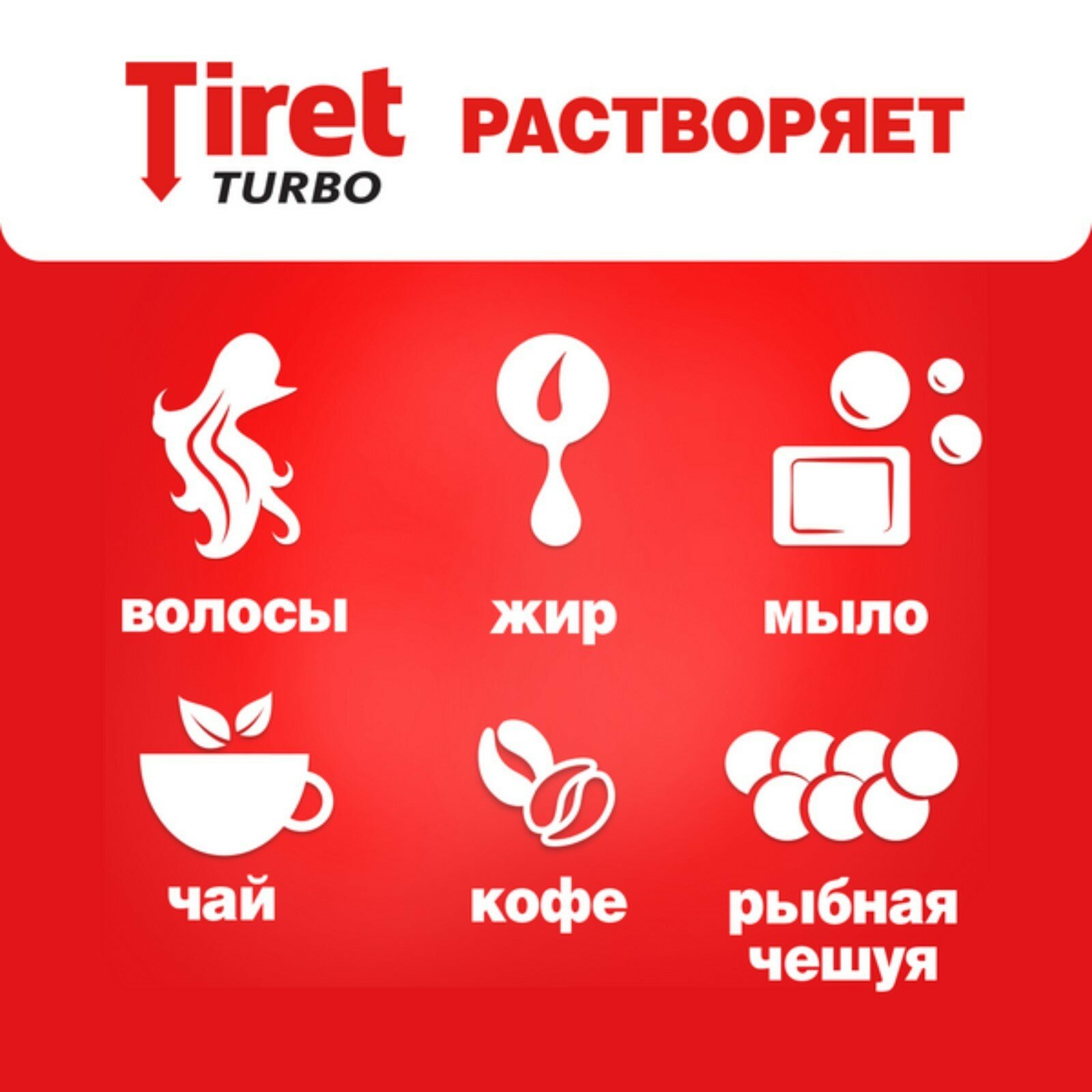 Средство от засоров Tiret Turbo, для прочистки канализационных труб, антизасор,500мл