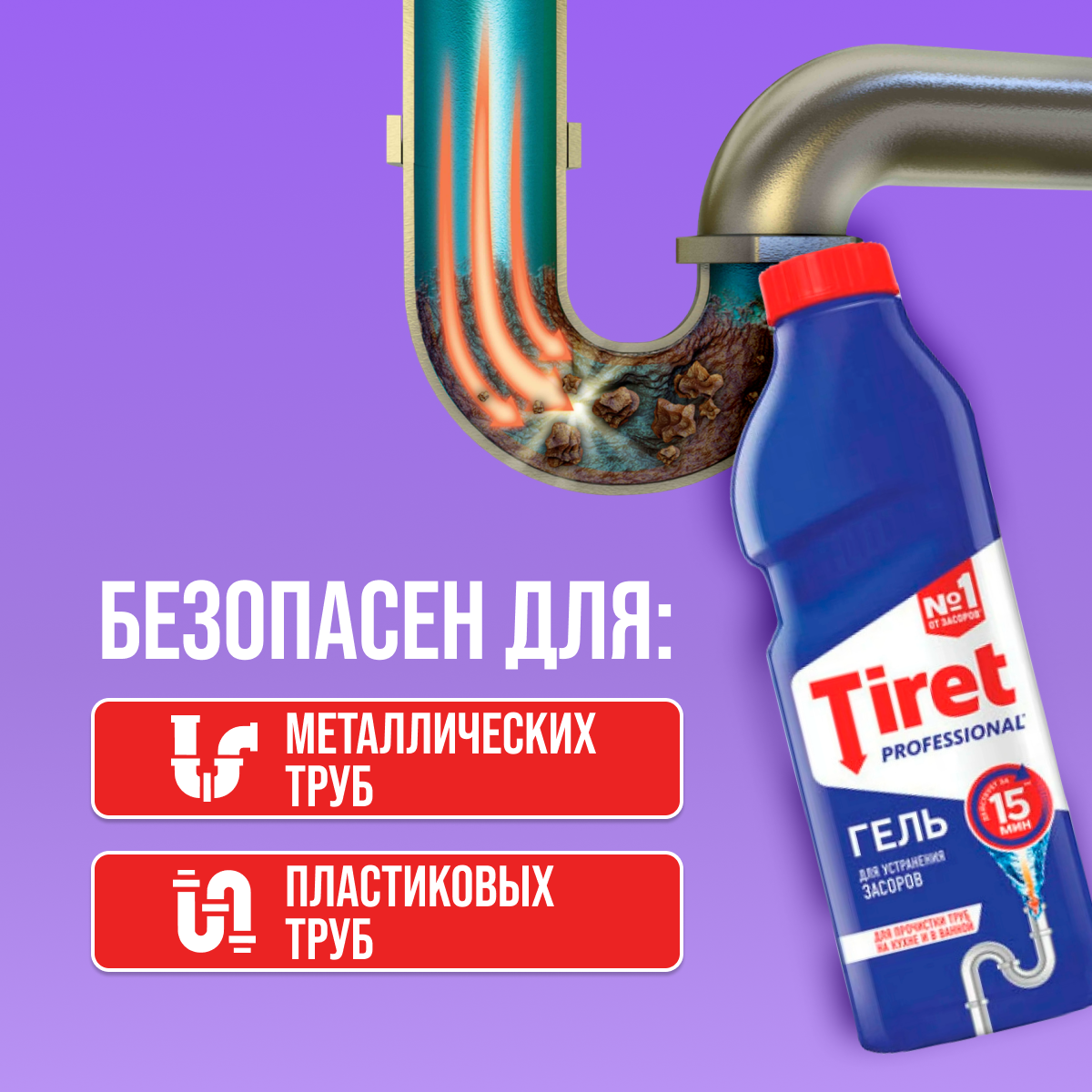 Гель д/прочистки труб TIRET Профессионал 465мл скидка