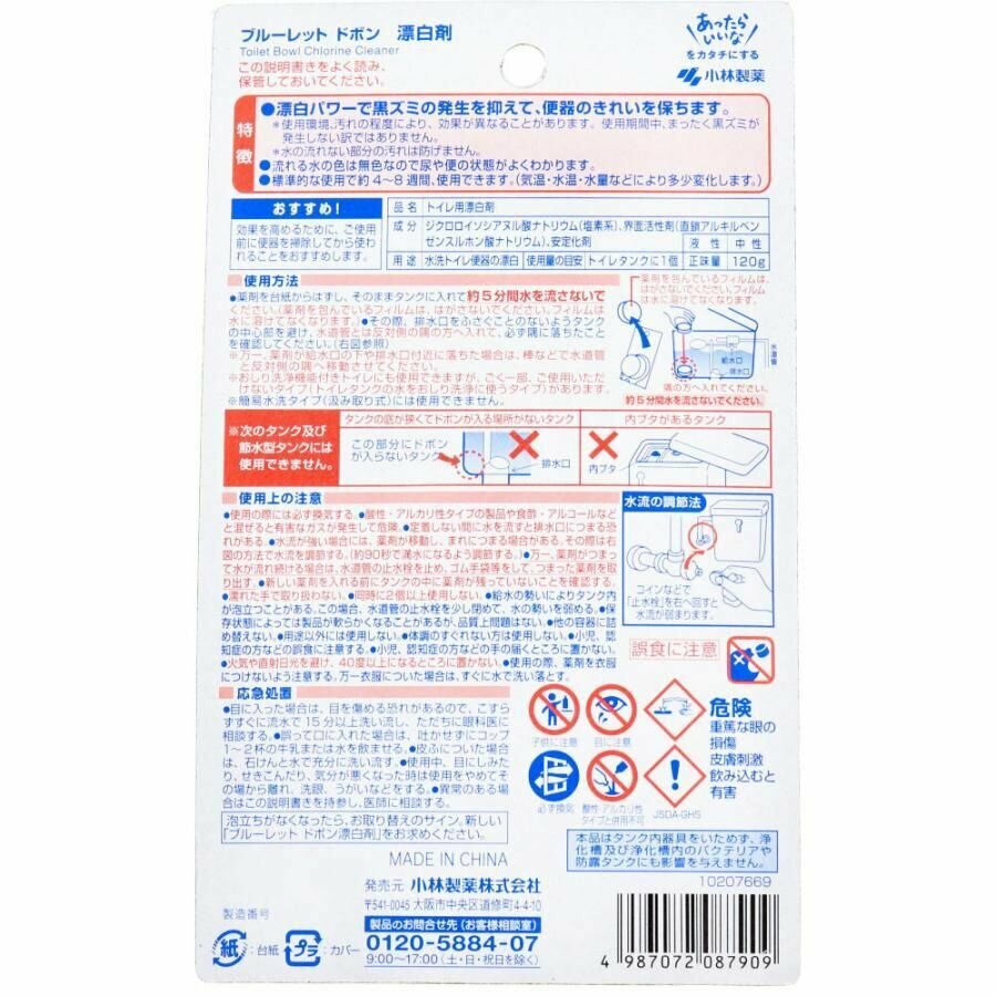 KOBAYASHI Очищающая и дезодорирующая таблетка для бачка унитаза, с отбеливающим эффектом Bluelet Dobon Cleaning Bleach, 120 г