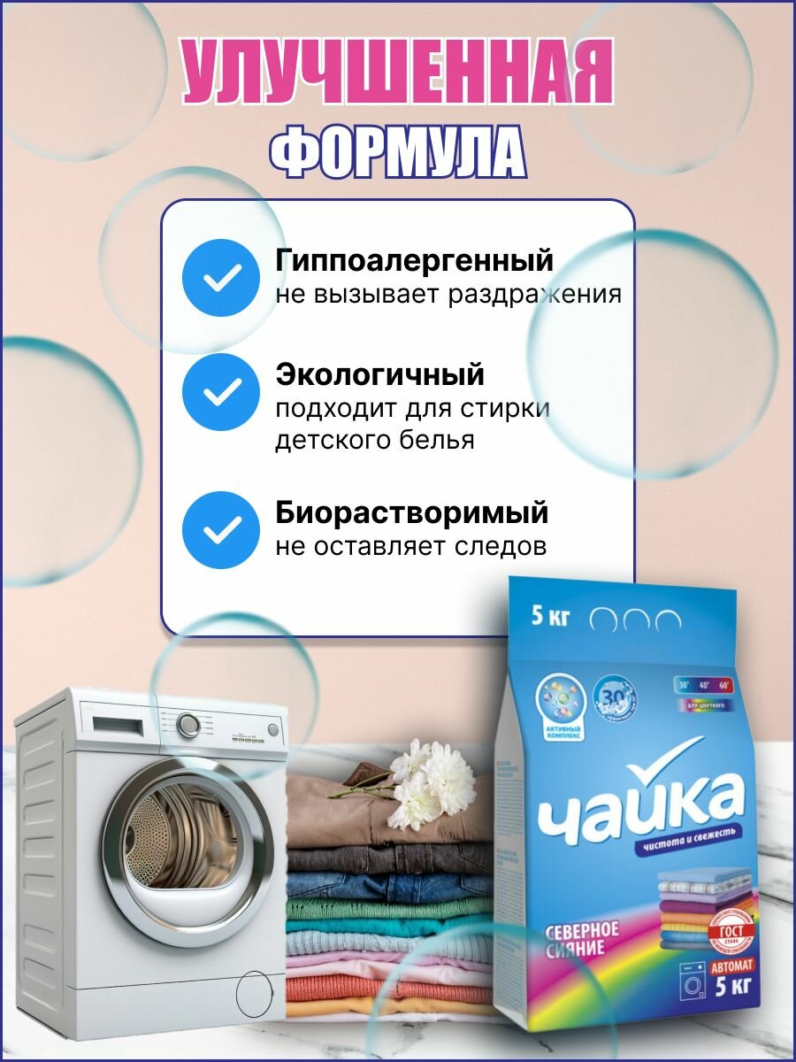 Стиральный порошок Чайка 5 кг, Автомат для цветного белья Северное сияние