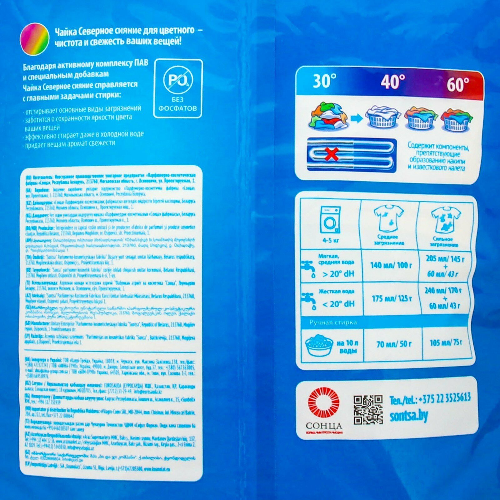 Стиральный порошок чайка северное сияние для цветных тканей автомат 9 кг (4814628005004)