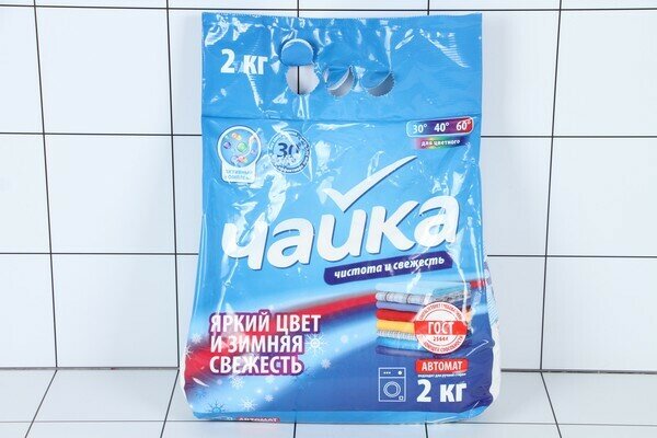 Стиральный порошок Чайка 2 кг, Автомат для цветного белья Яркий цвет и зимняя свежесть