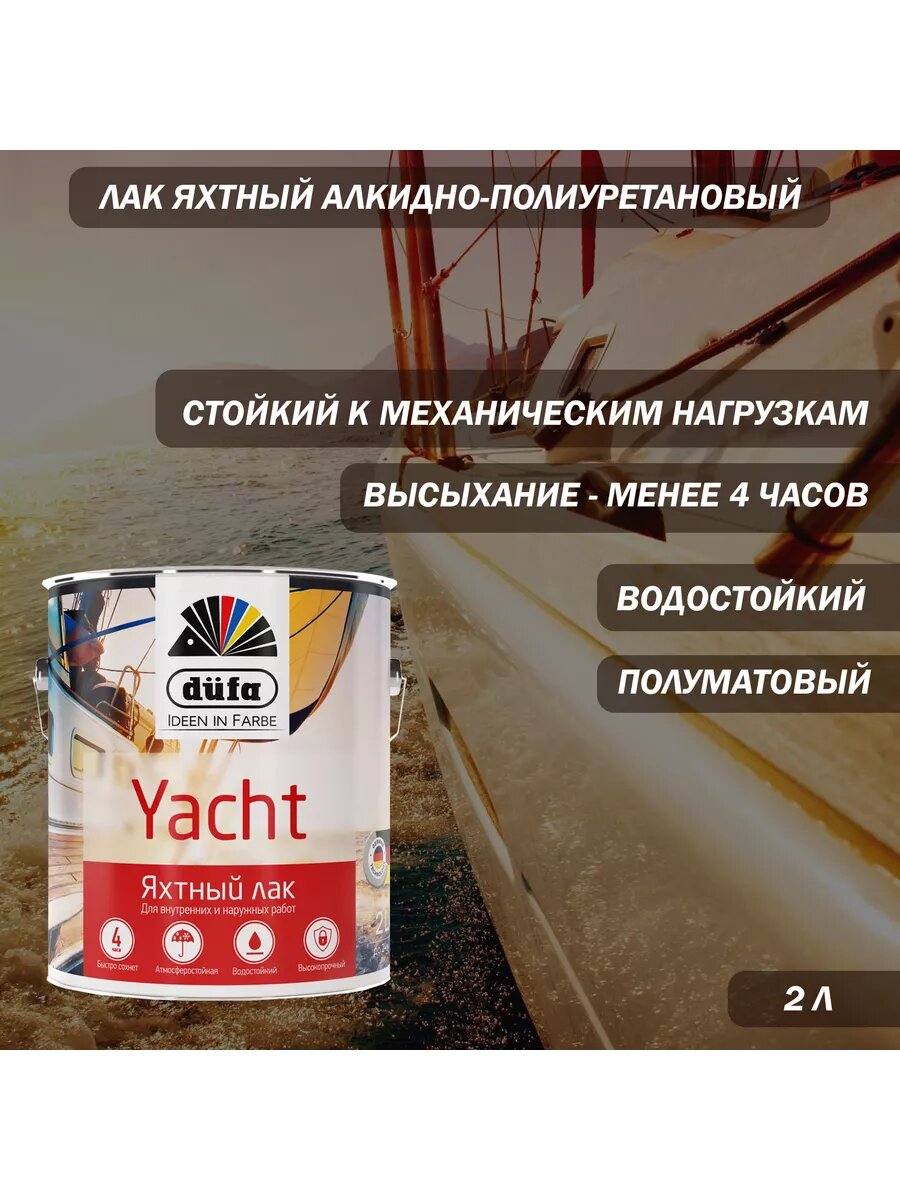 Лак яхтный Dufa Retail Yacht полуматовый алкидно-уретановый бесцветный 2 л