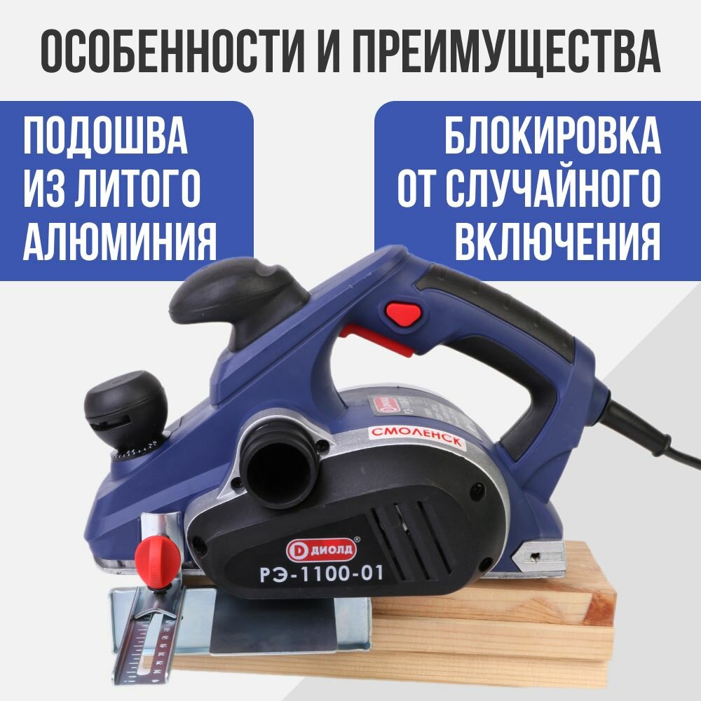 Рубанок электрический диолд РЭ-1100-01, 1100 Вт, 16000 об/мин, российский производитель