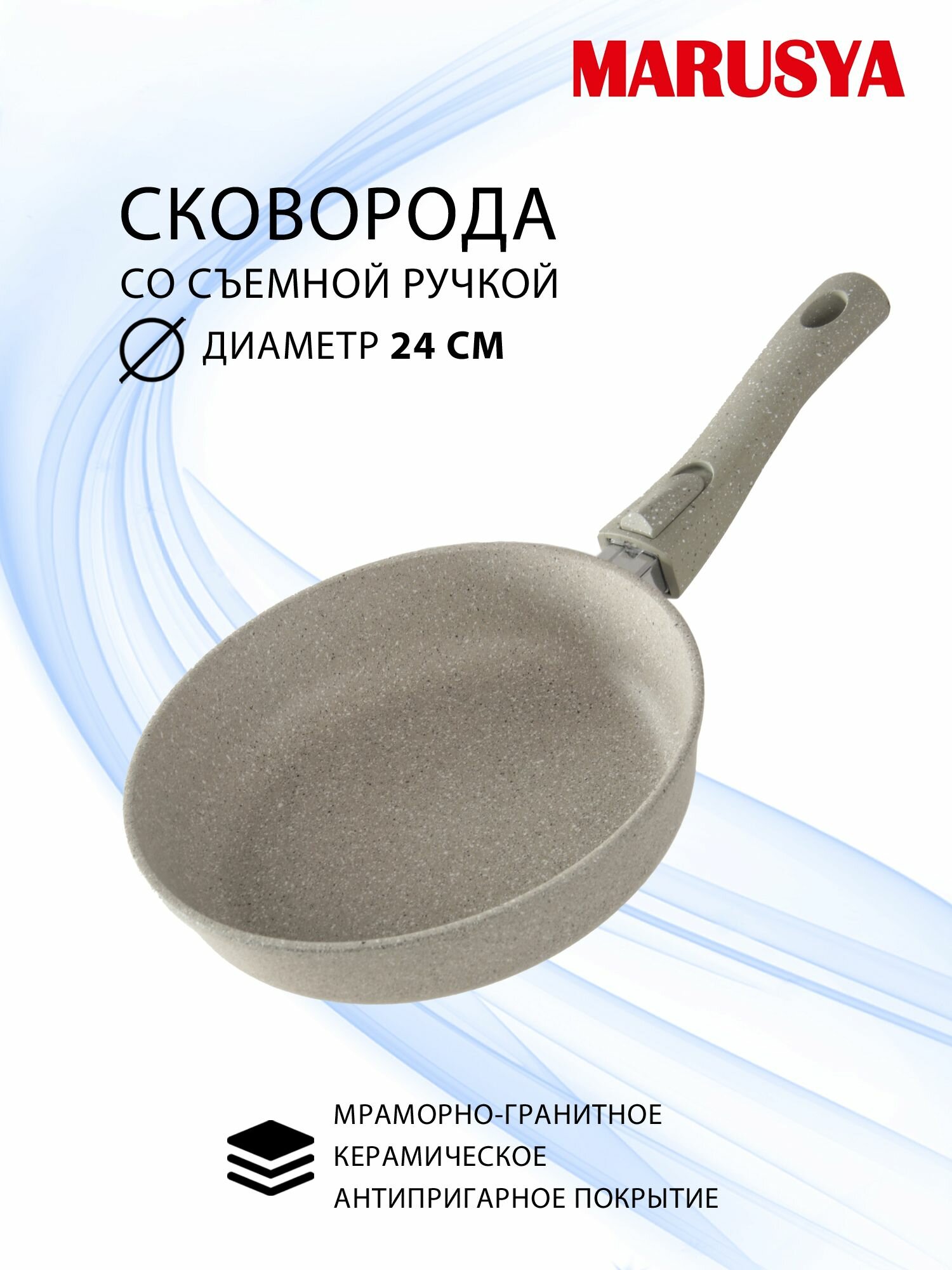 Сковорода с антипригарным покрытием со съемной ручкой Marusya 24 см из литого алюминия для газовой и электрической плиты