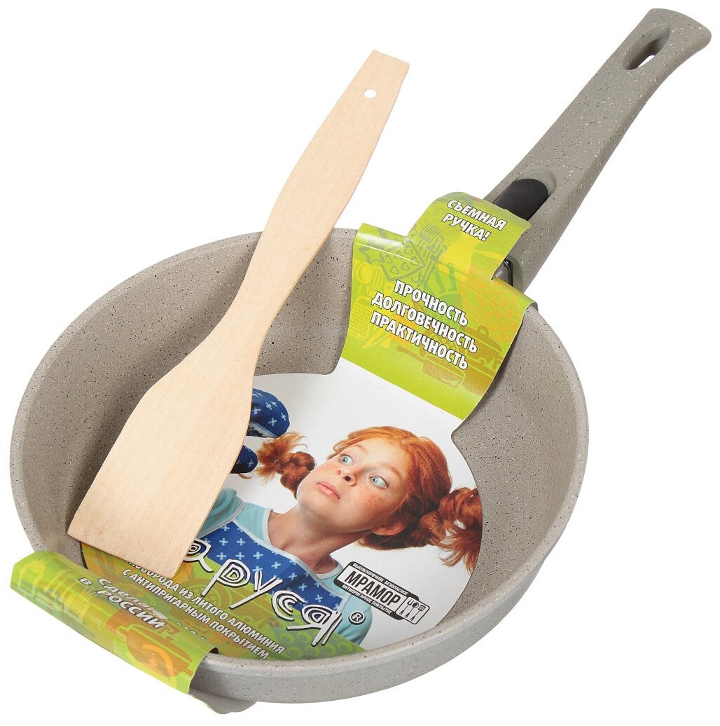 Сковорода Маруся Мрамор 9024 24 см со съемной ручкой (литая антипригарная) серая