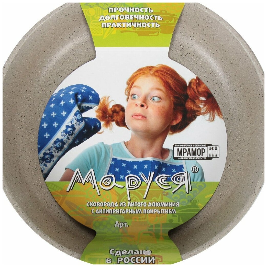 Сковорода Маруся Мрамор 9028 28 см со съемной ручкой (литая антипригарная) серая