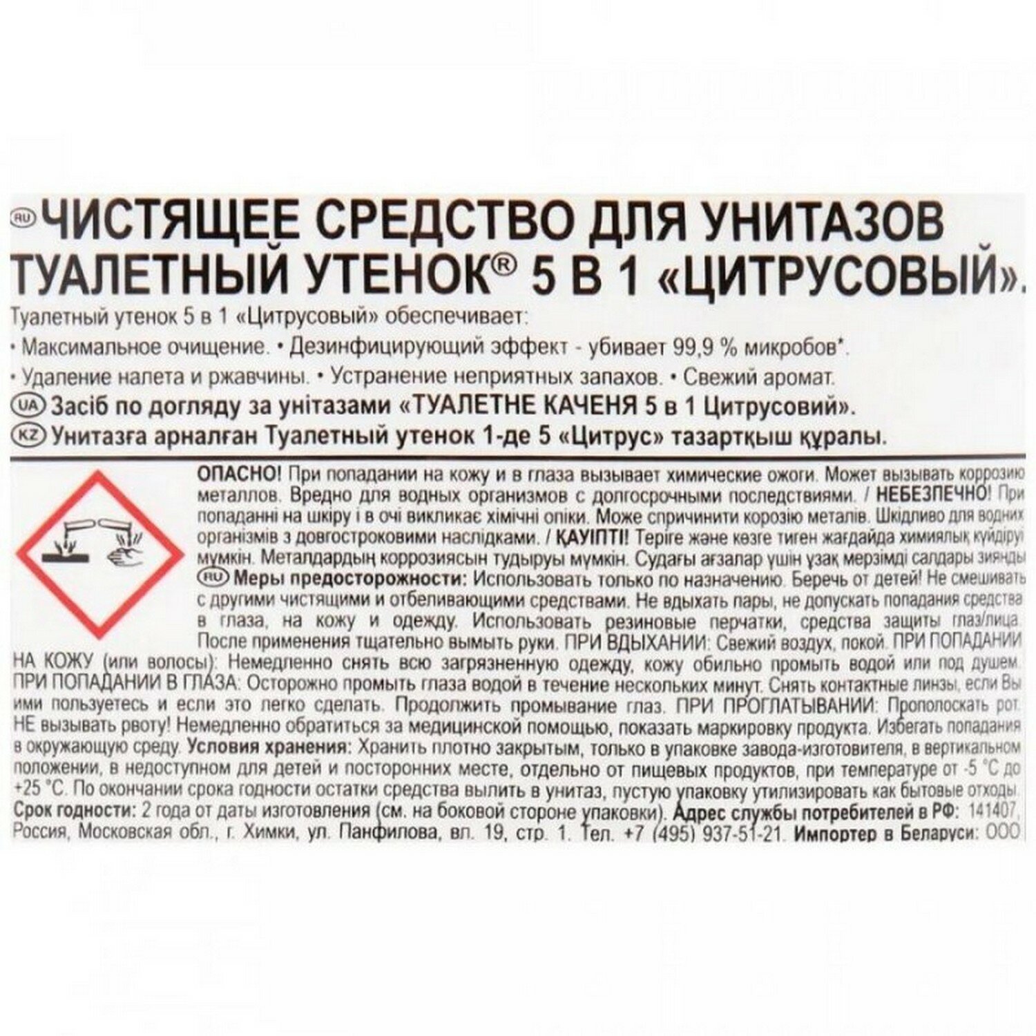 Туалетный Утёнок 5 в 1 Цитрусовый - Чистящее средство для унитаза 900 мл
