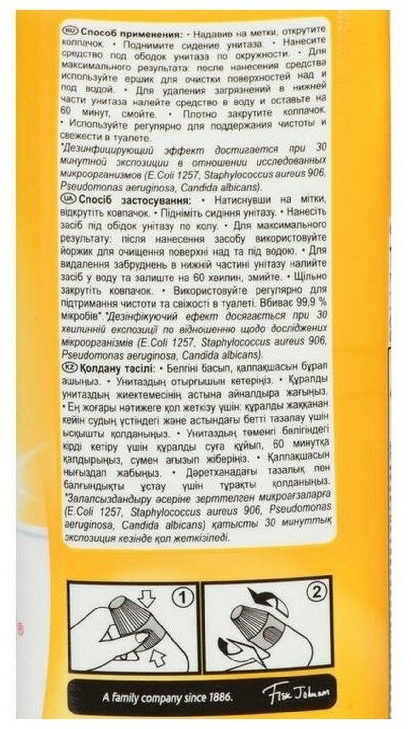 Максимальное очищенные Недостатки: Нет Туалетный утенок, удаляет налет и ржавчину, дезинфицирует, легко попадает под ободок, приятный и свежий аромат |