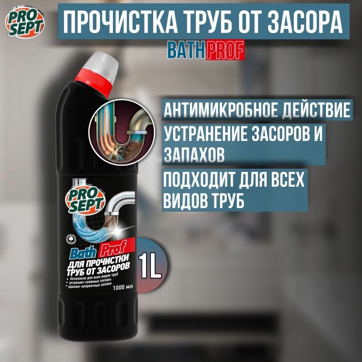 PROSEPT средство для прочистки труб от засоров Bath, 1 л