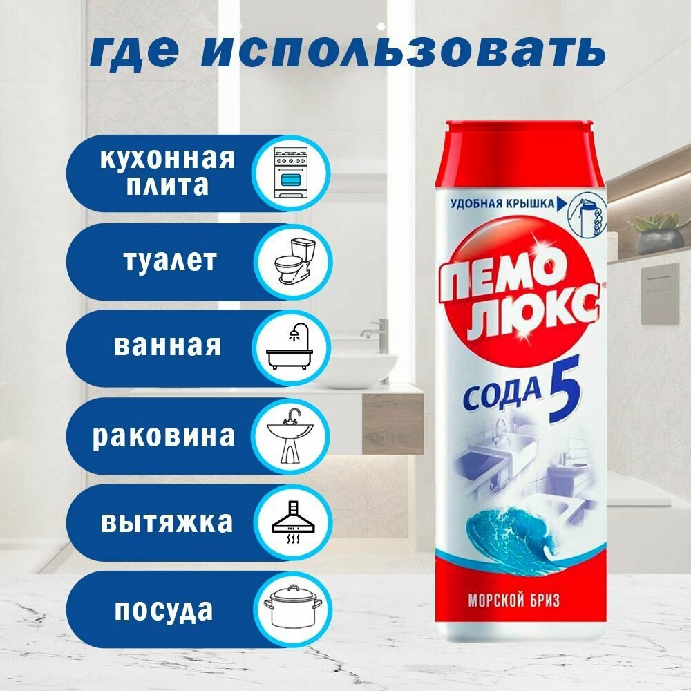 Средство чистящее пемолюкс порошок (флак 480г) Сода 5 Морской бриз, 2 шт.