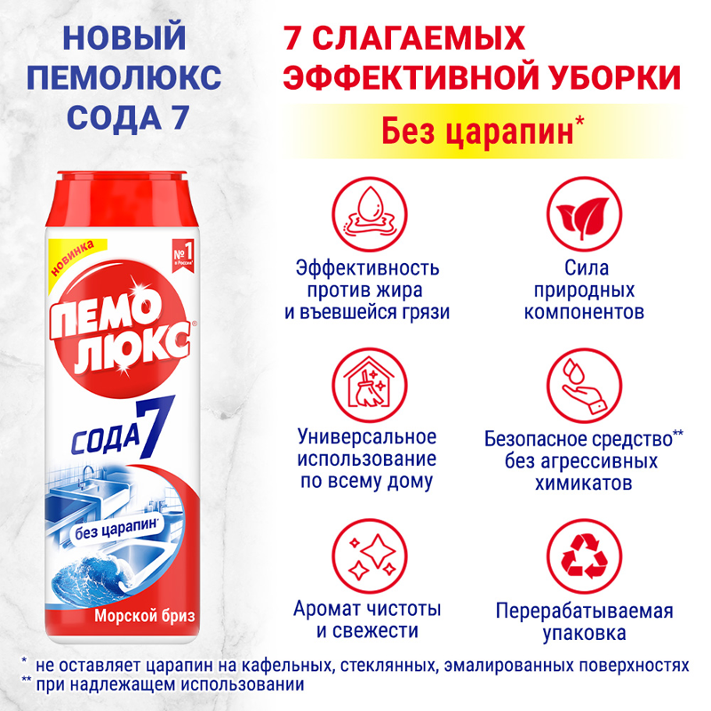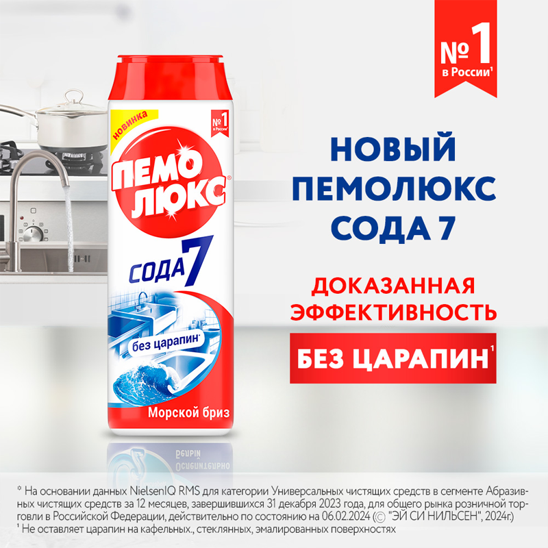 Чистящее средство универсальное Пемолюкс Сода-7 "Яблоко", порошок, 480г (2073824/2414453), 16шт.