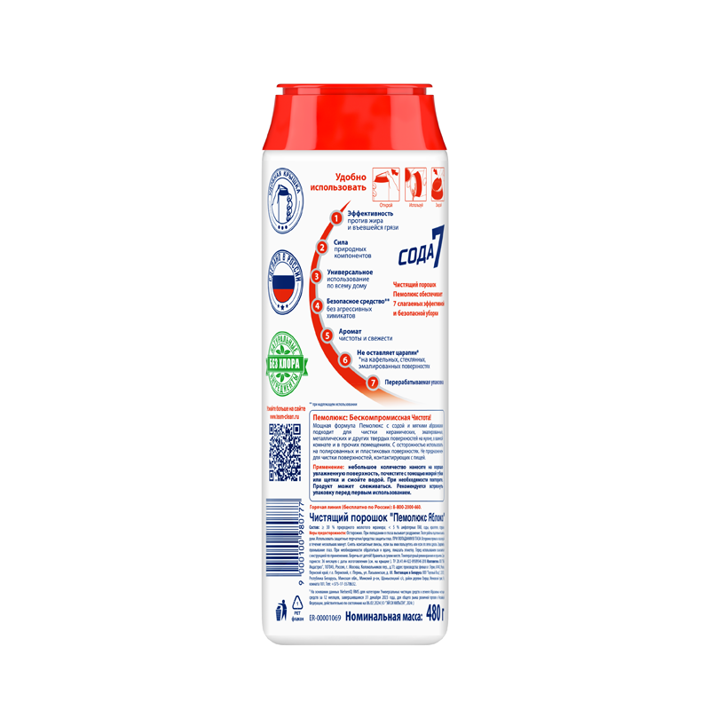 Чистящее средство универсальное Пемолюкс Сода-7 "Яблоко", порошок, 480г (2073824/2414453), 16шт.