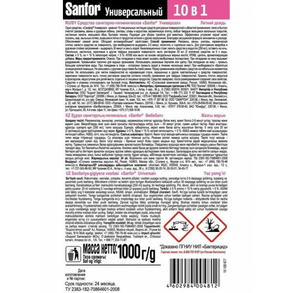 б/х_схз_sanfor_Гель дезинф.Universal 1000 летн.дождь(1956) 6D6012