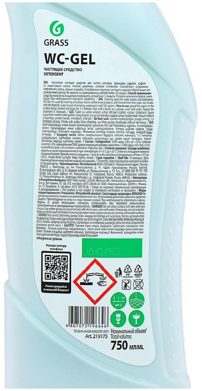 СохранитьGrass WC-GEL Гель для чистки сантехники Анти-ржавчина 750 мл 0,75 л интересное: