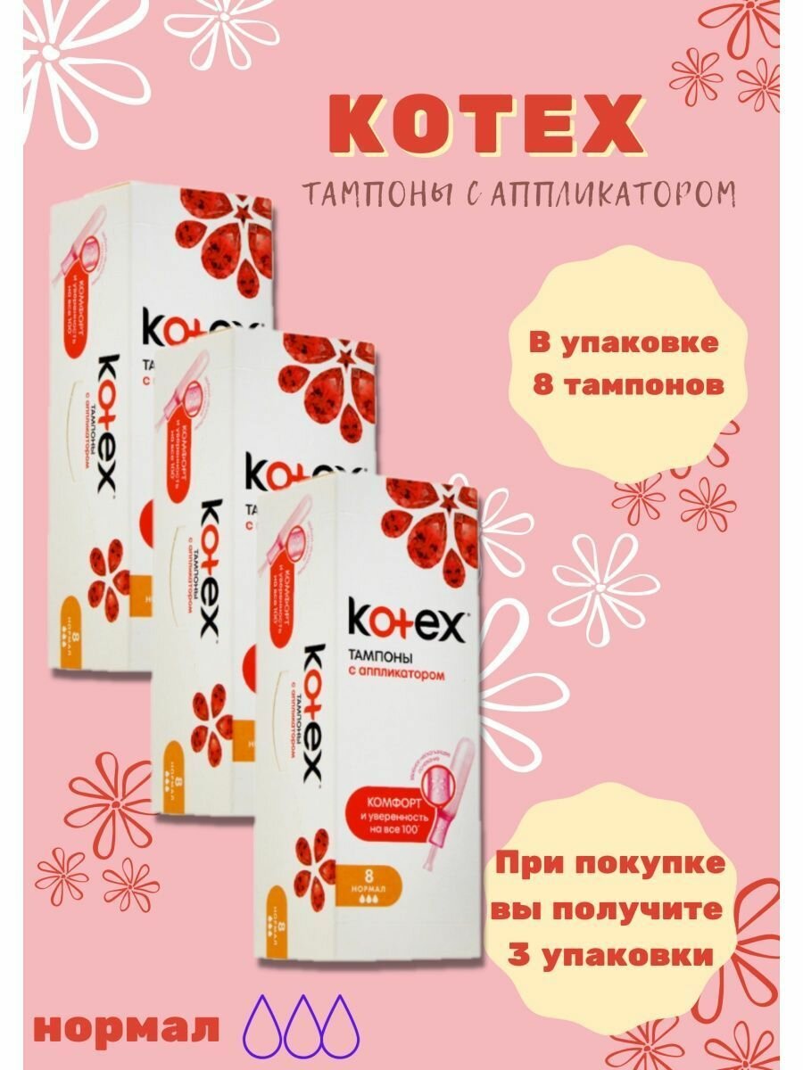 Тампоны Kotex NORMAL с аппликатором, 3 уп. по 8 шт.